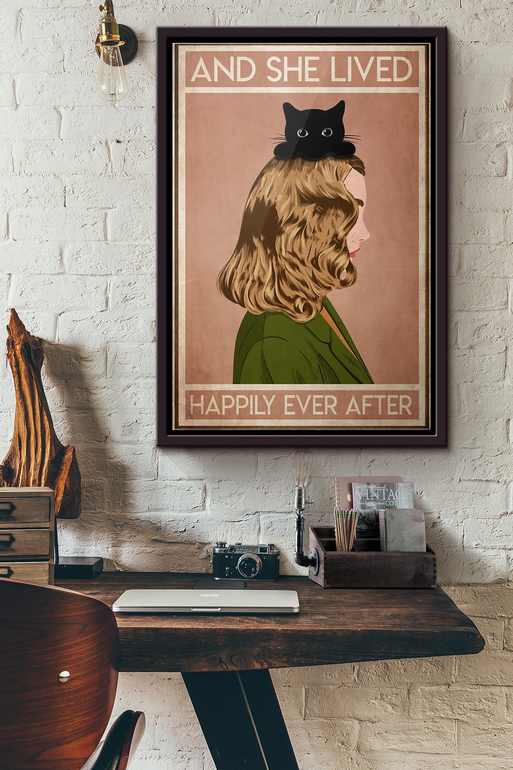 Black Cat Blonde Girl And She Lived Happily Ever After Poster Framed Matte Canvas