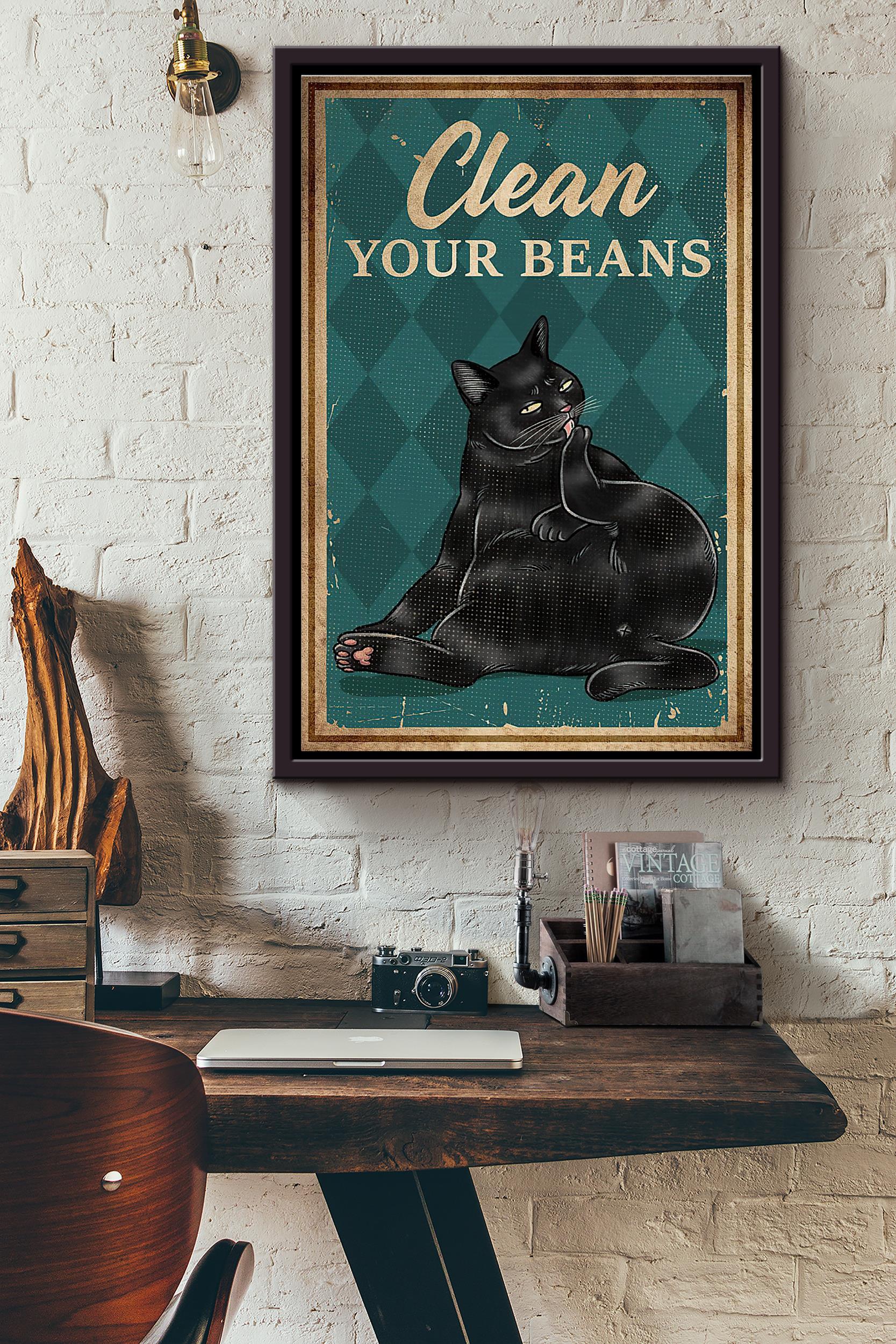 Black Cat Clean Your Beans Poster Framed Matte Canvas