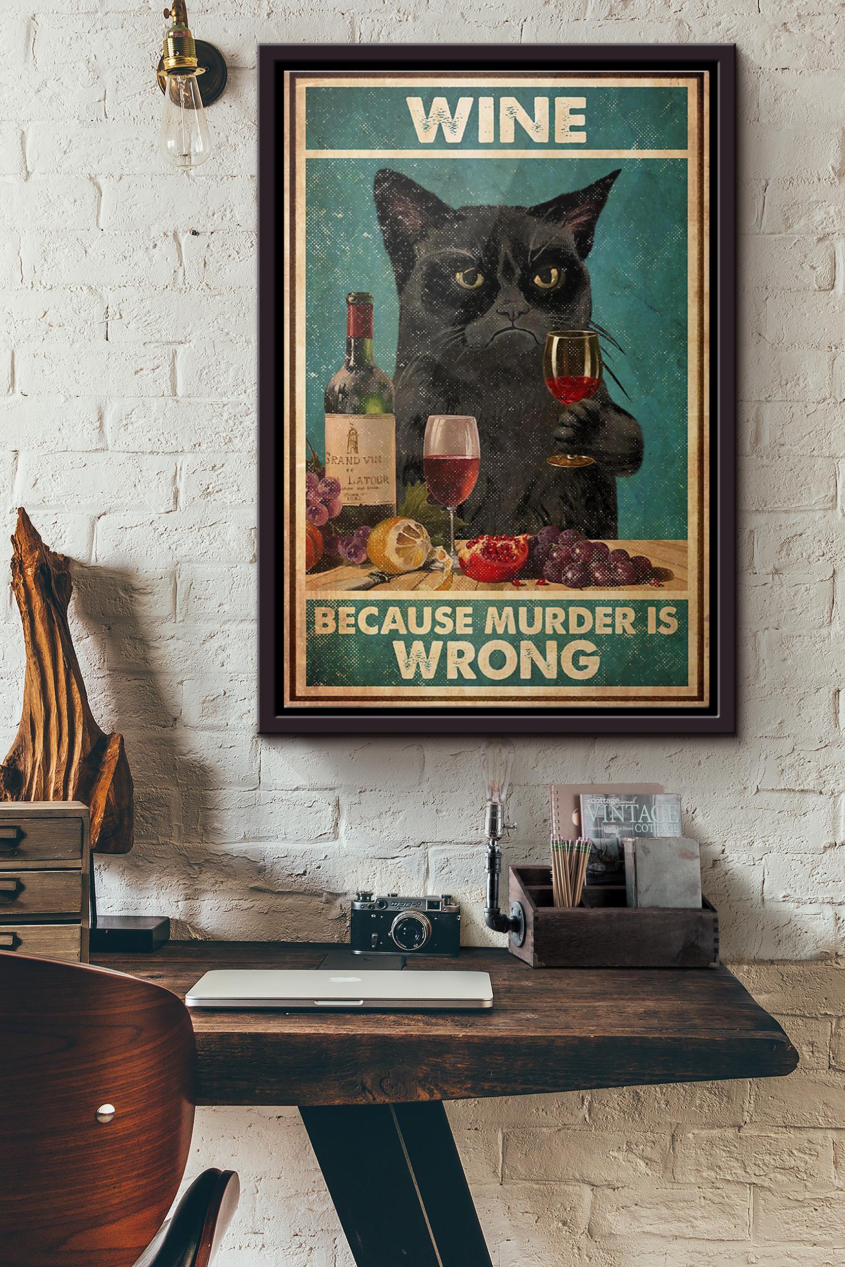 Black Cat Drink Wine Because Murder Is Wrong And Poster Framed Matte Canvas