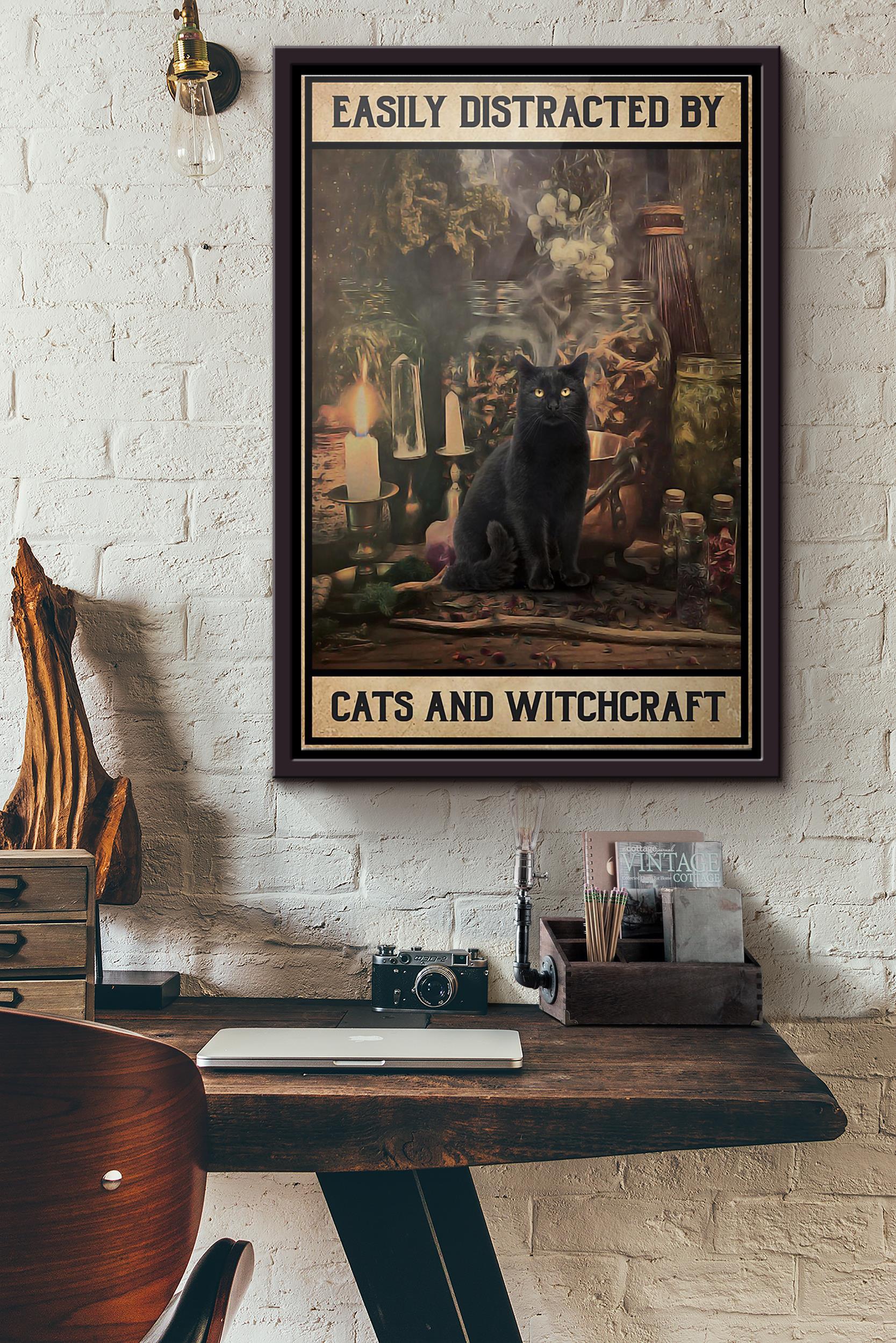 Black Cat Easily Distracted Cats And Witchcraft Poster Framed Matte Canvas