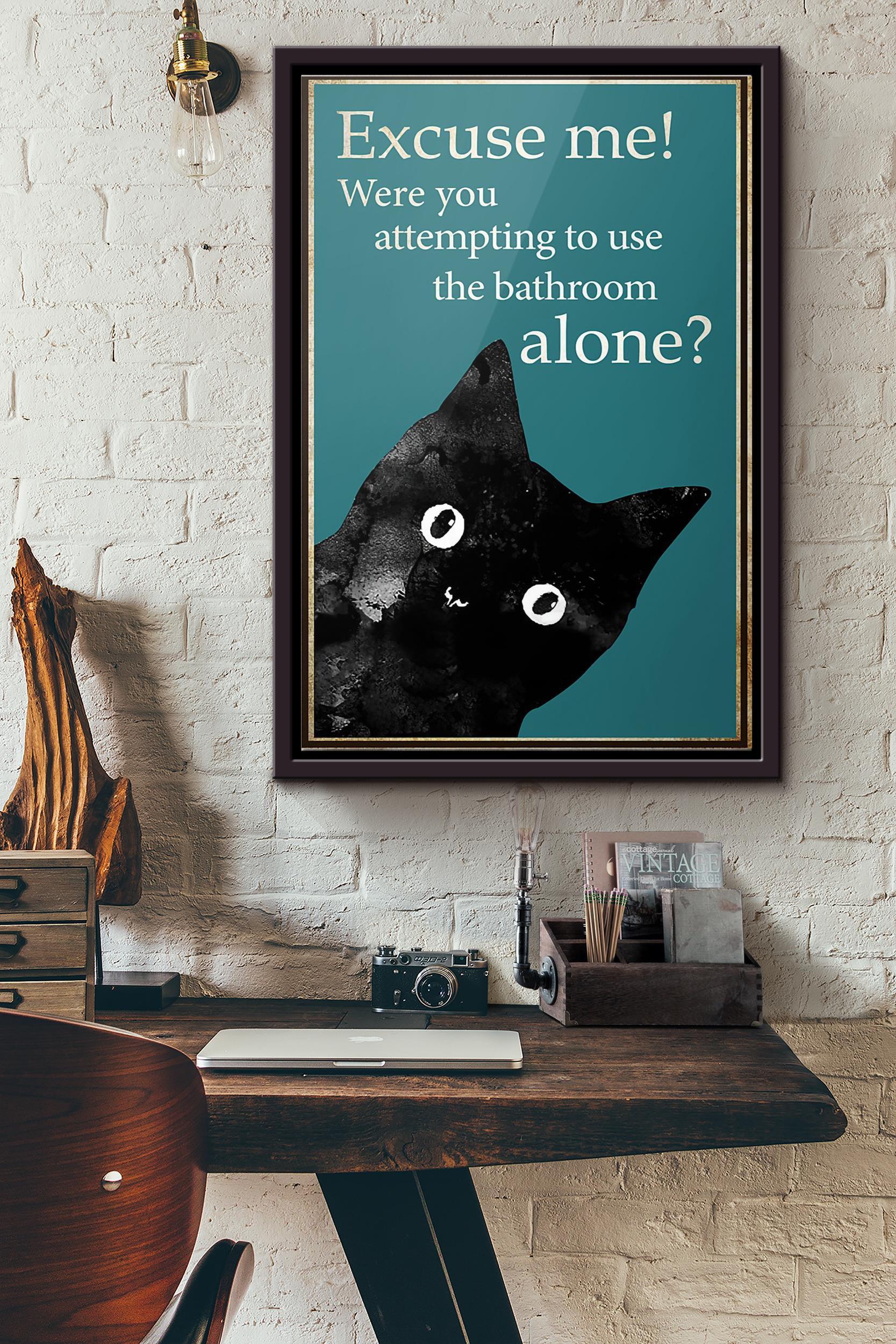 Black Cat Excuse Me Were You Attempting To Use The Bathroom Alone Poster Framed Matte Canvas