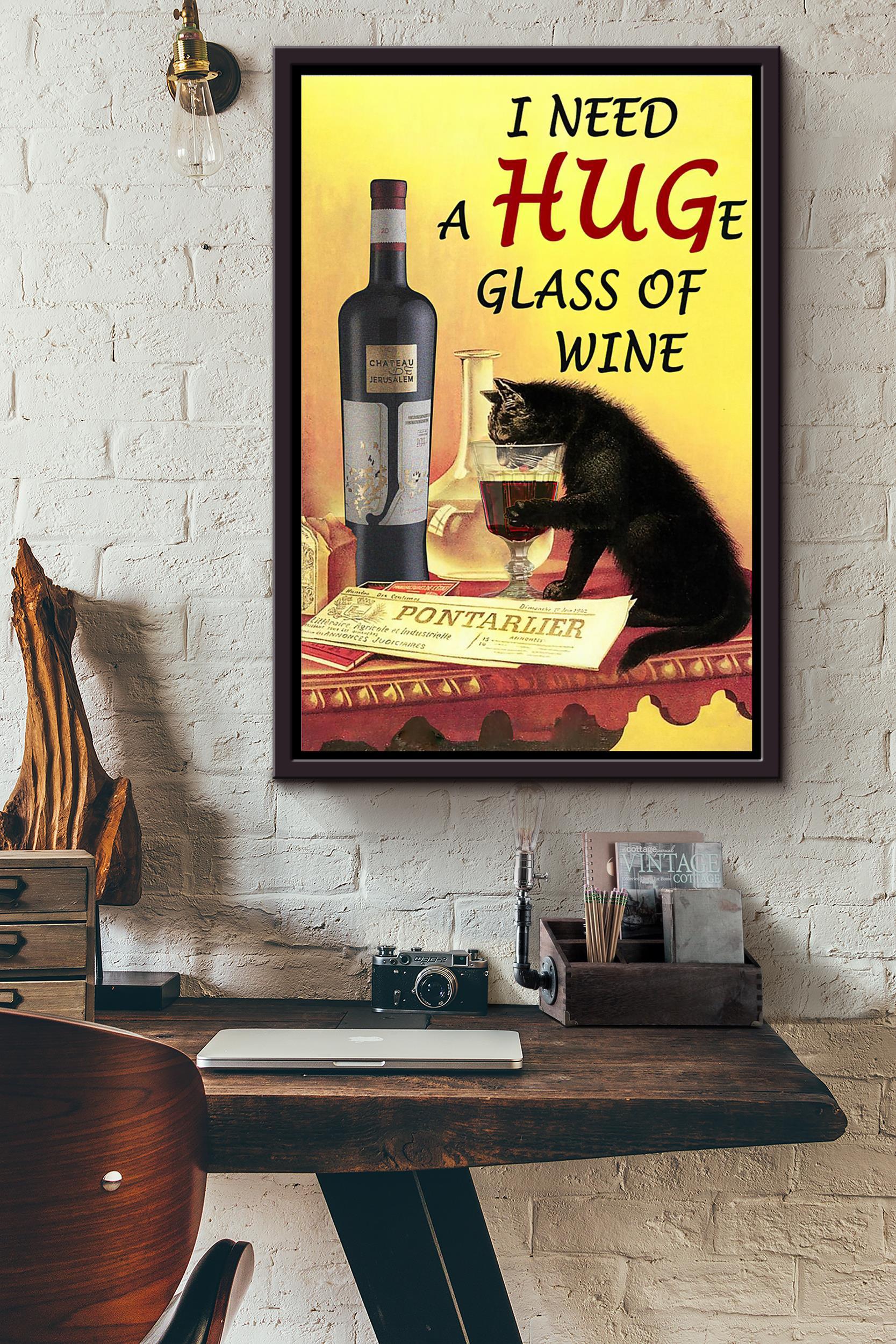 Black Cat I Need A Huge Glass Of Wine Poster Framed Matte Canvas