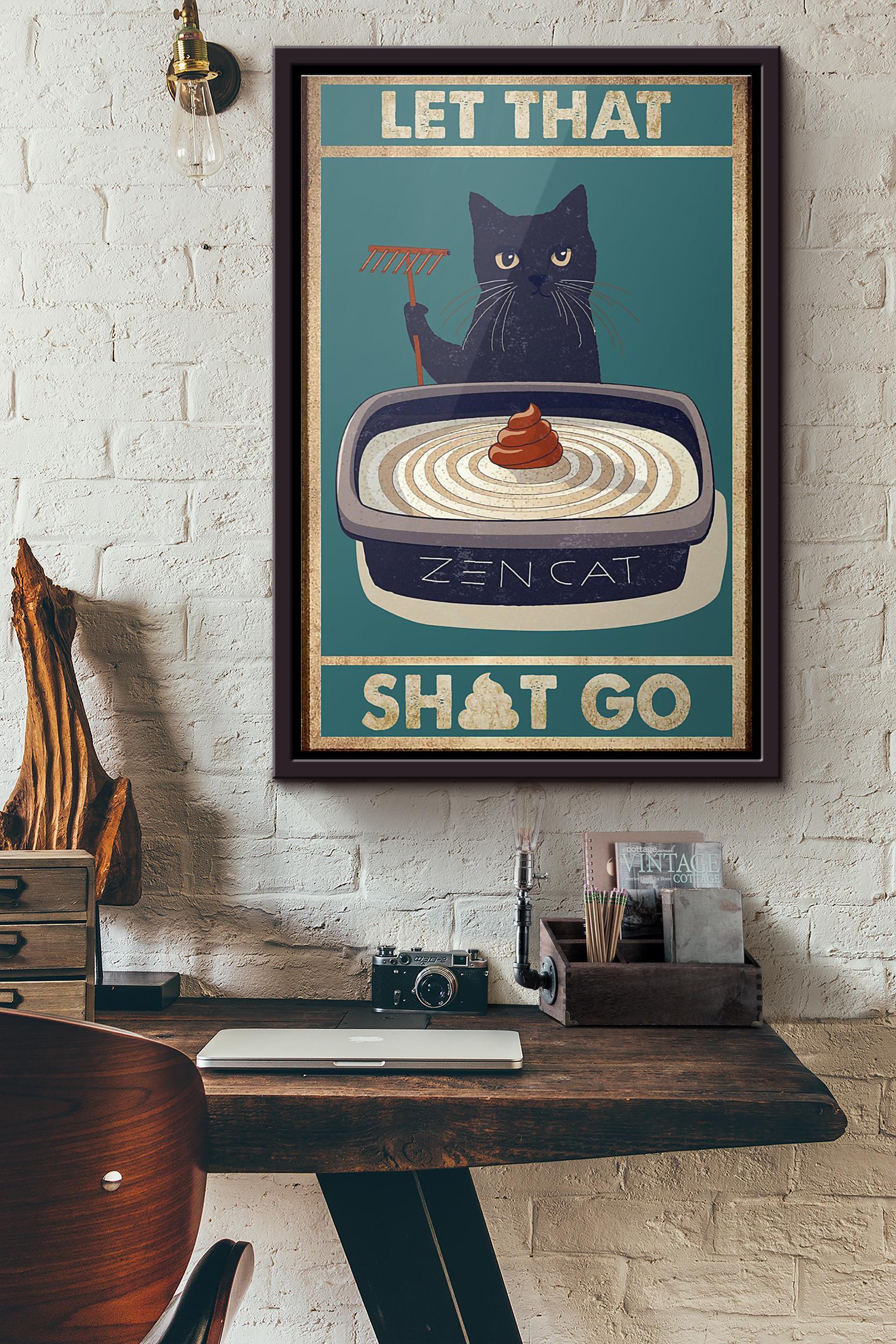 Black Cat Let That Shit Go Poster Framed Matte Canvas