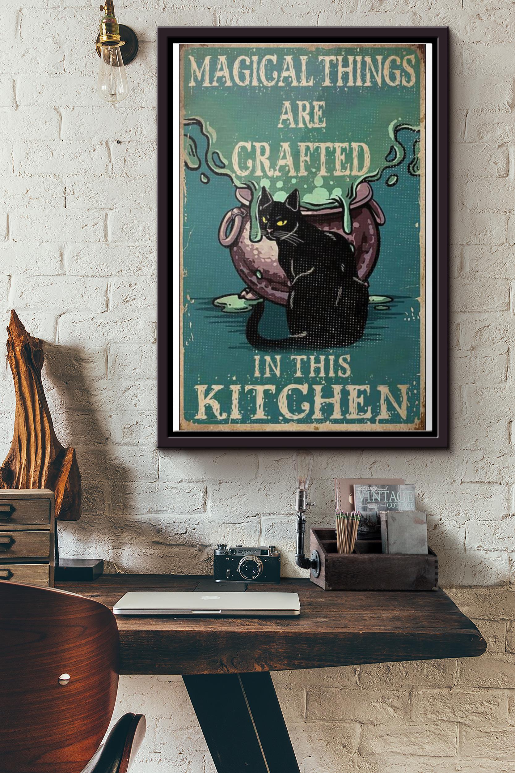 Black Cat Magical Things Are Grafted In This Kitchen Poster Framed Matte Canvas
