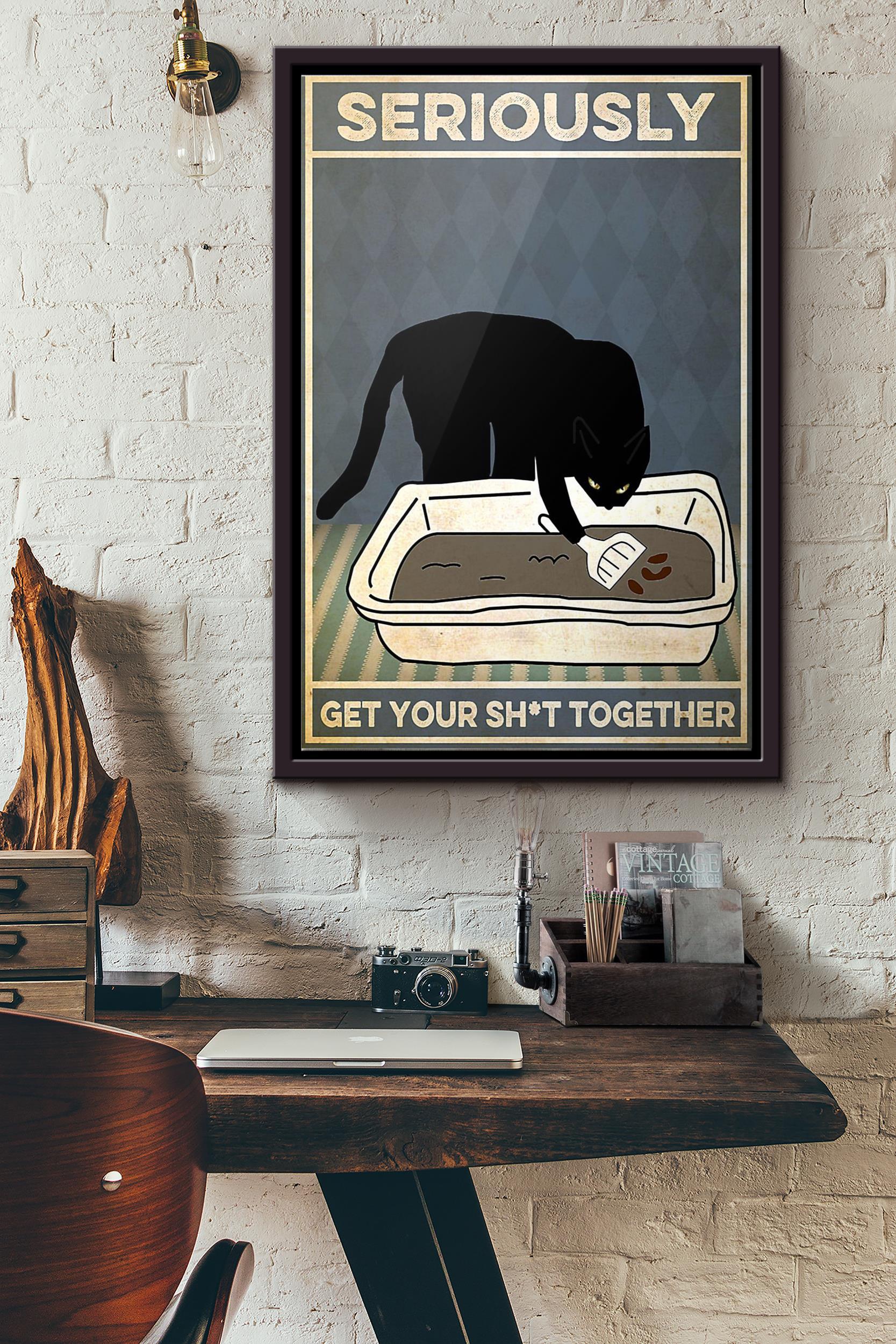 Black Cat Seriously Get Your Shit Together Poster Framed Matte Canvas