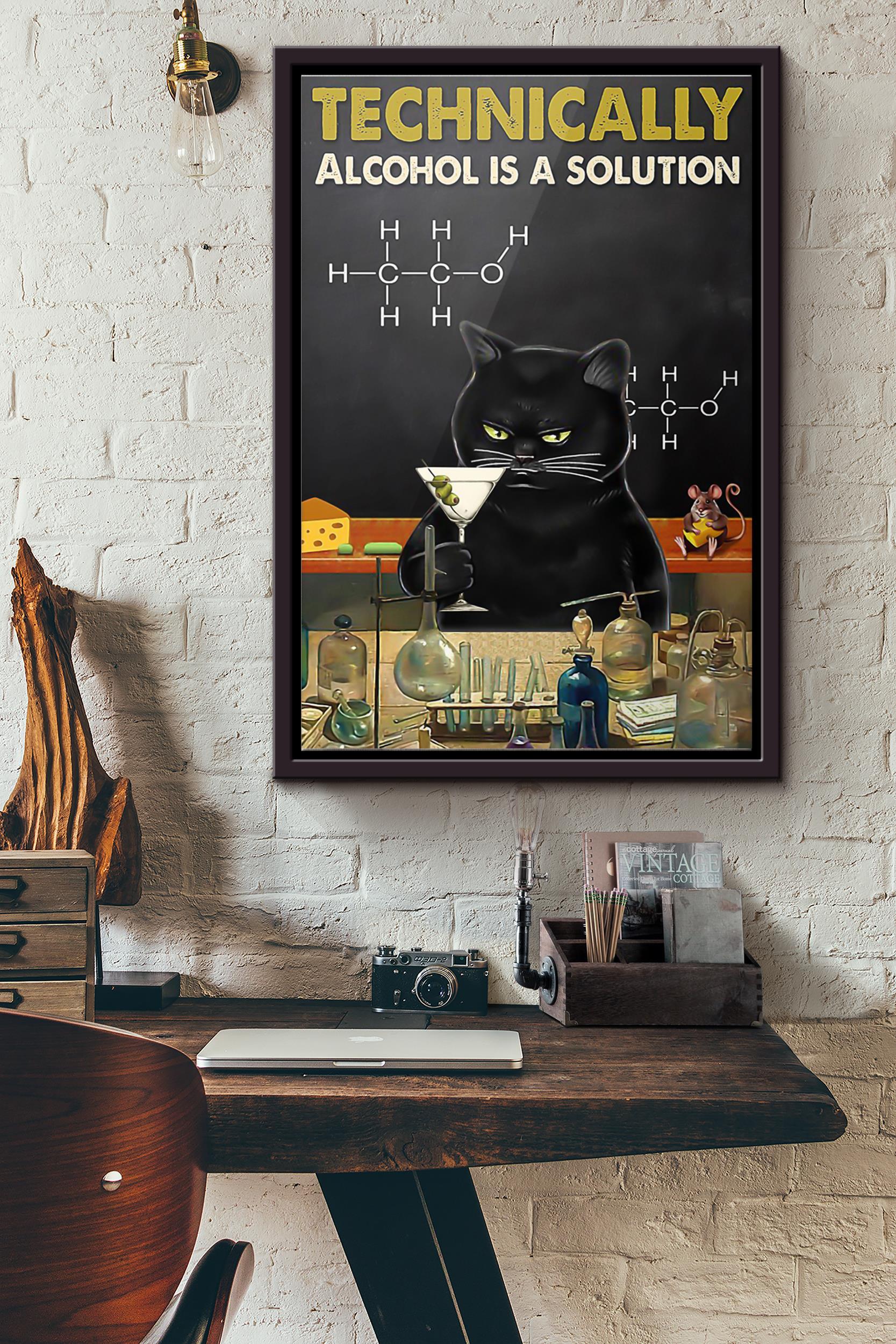Black Cat Technically Alcohol Is A Solution Poster Framed Matte Canvas