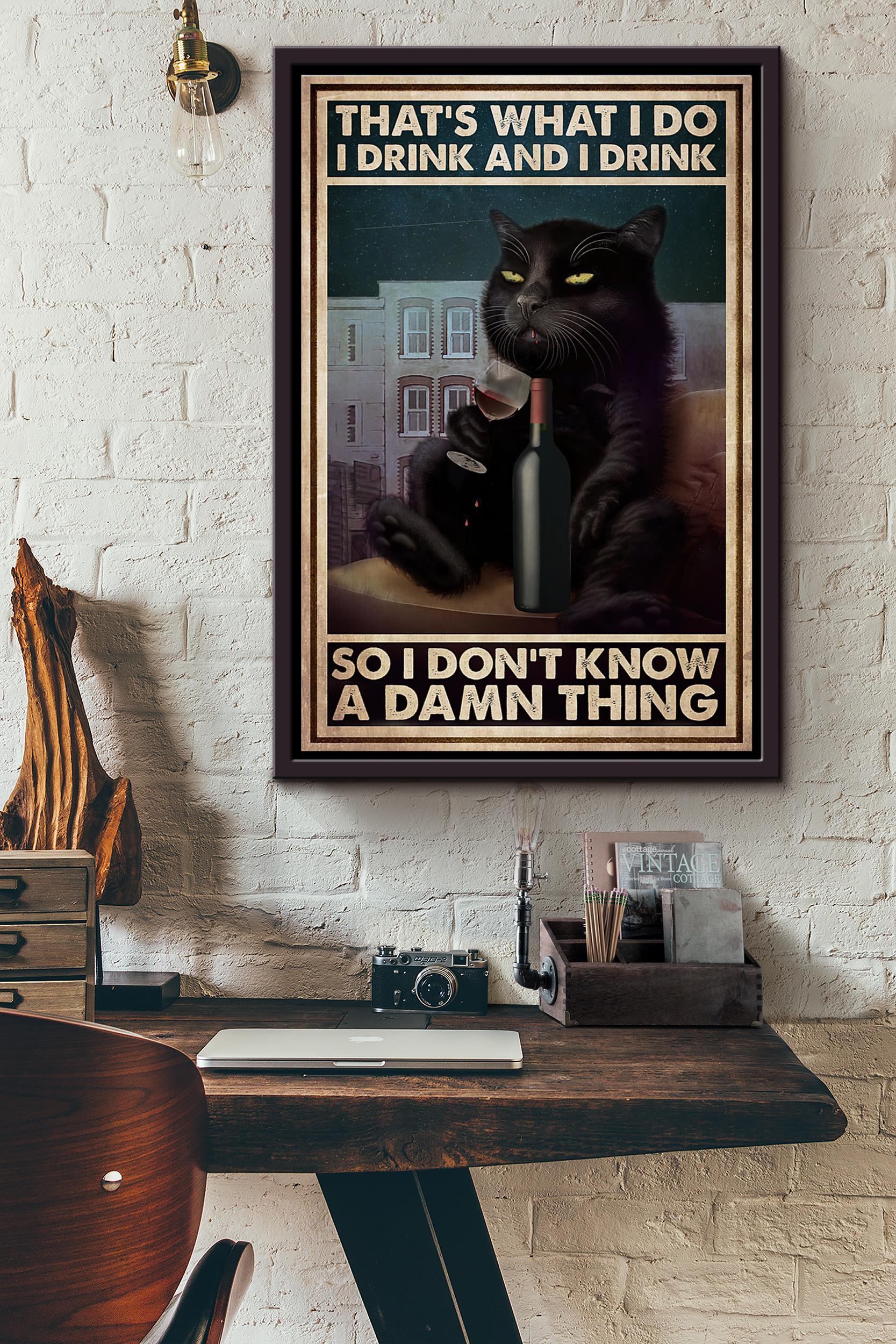 Black Cat Thats What I Do I Drink And I Drink Wine So I Dont Know A Damn Thing Poster Framed Matte Canvas