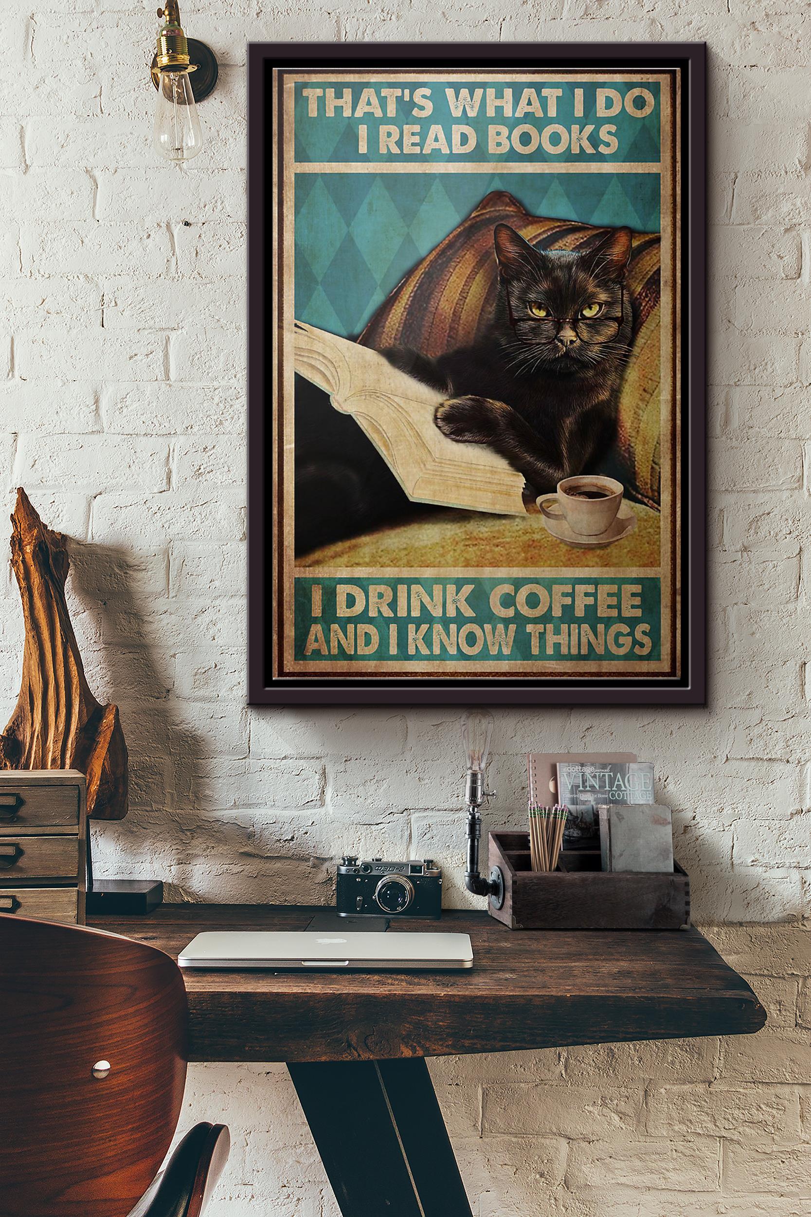 Black Cat Thats What I Do I Read Books I Drink Coffee And I Know Things Poster Framed Matte Canvas