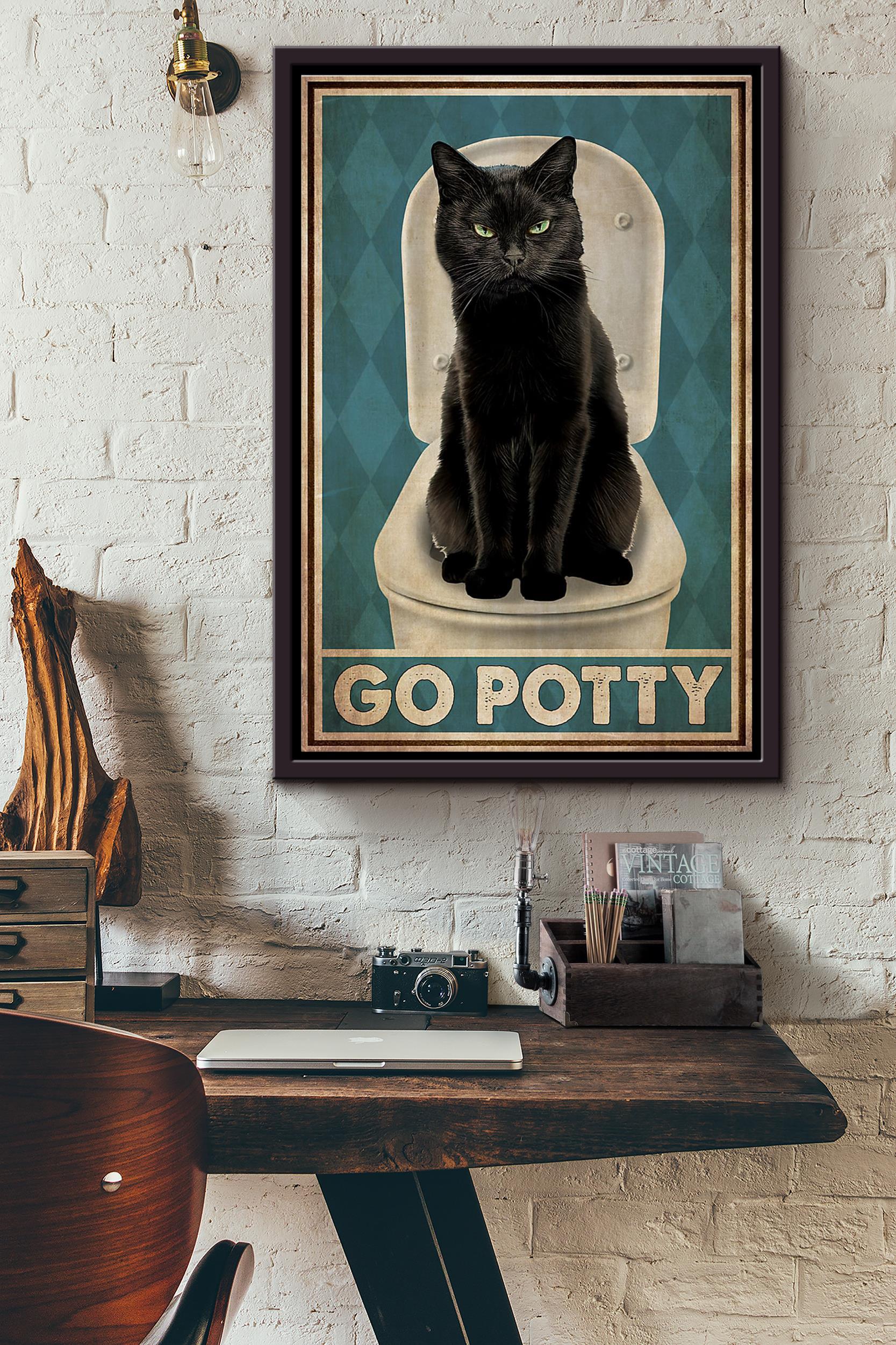 Black Cat Toilet Go Potty Poster Framed Matte Canvas