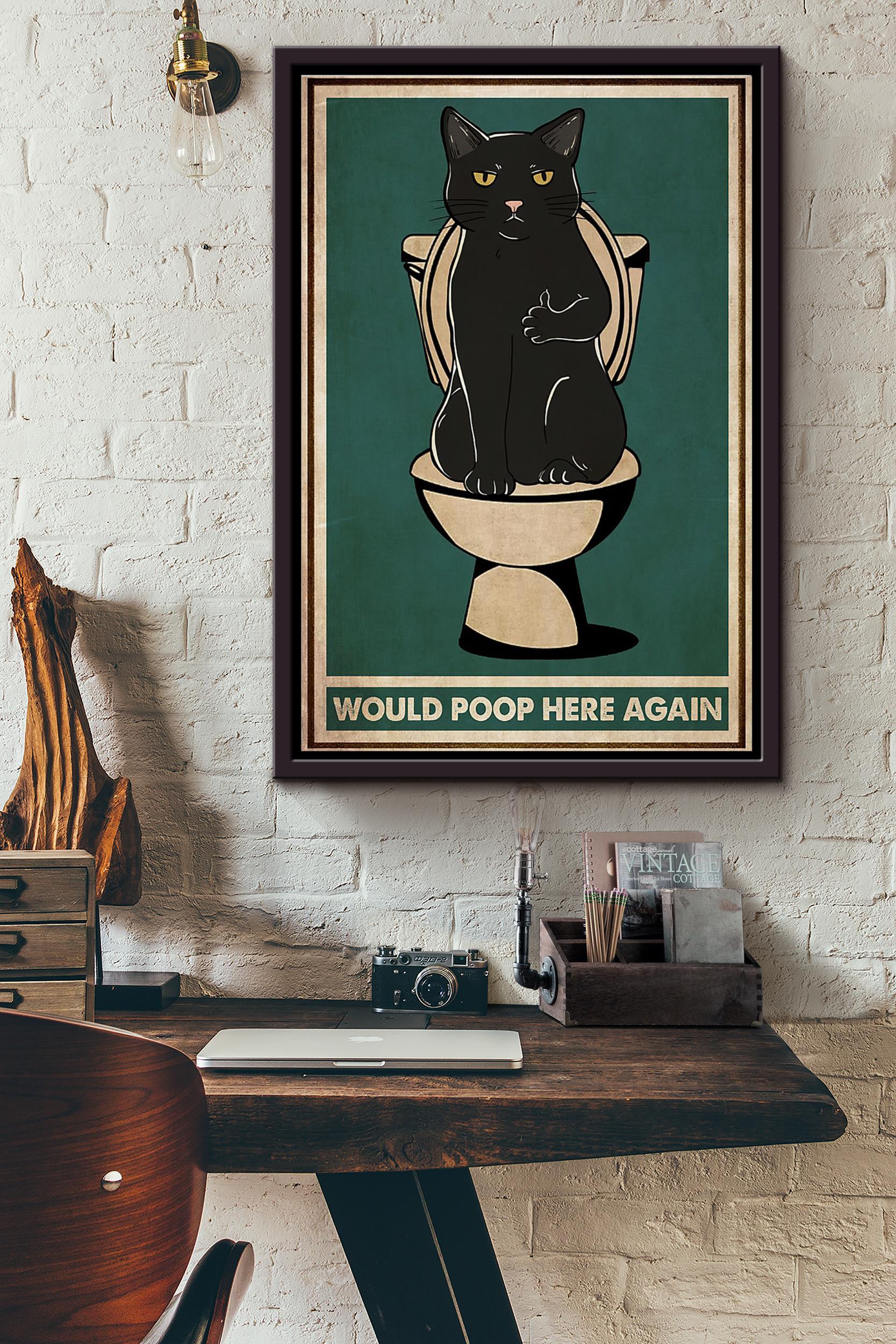 Black Cat Toilet Would Poop Here Again Poster Framed Matte Canvas