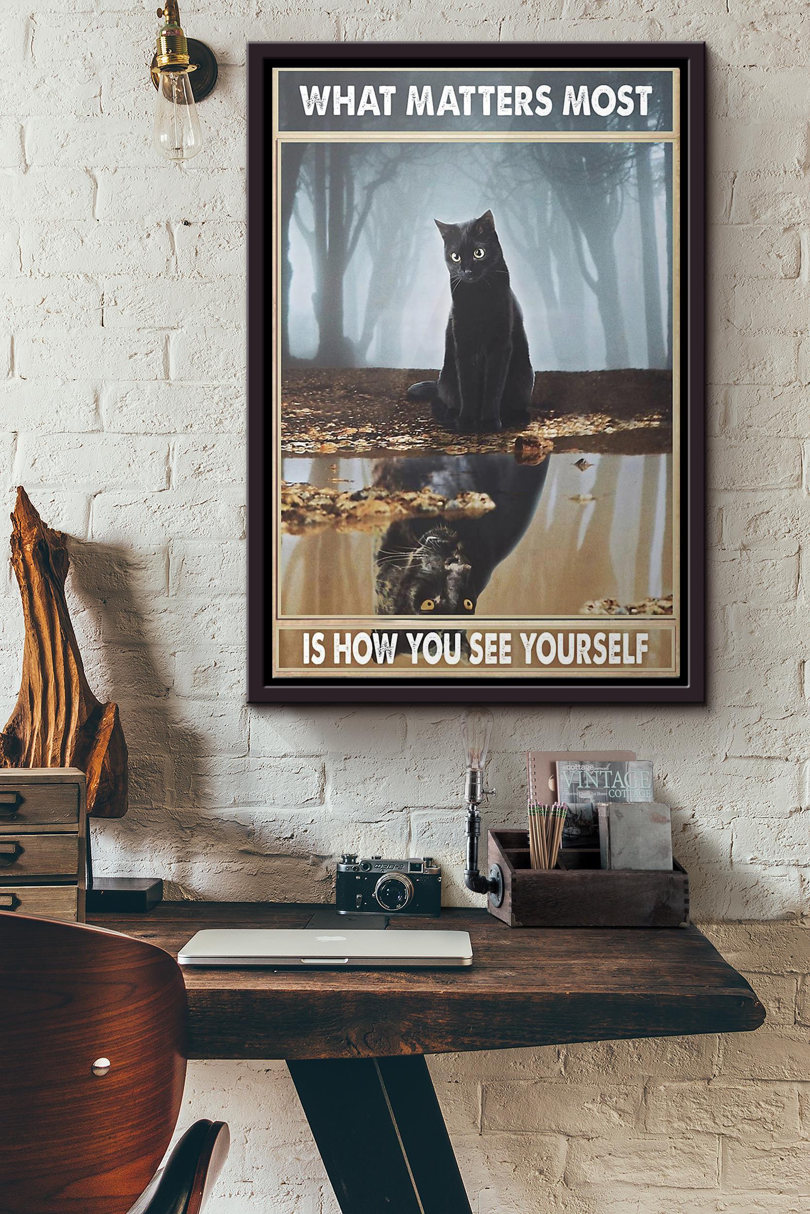 Black Cat What Matters Most Is How You See Yourself Poster Framed Matte Canvas