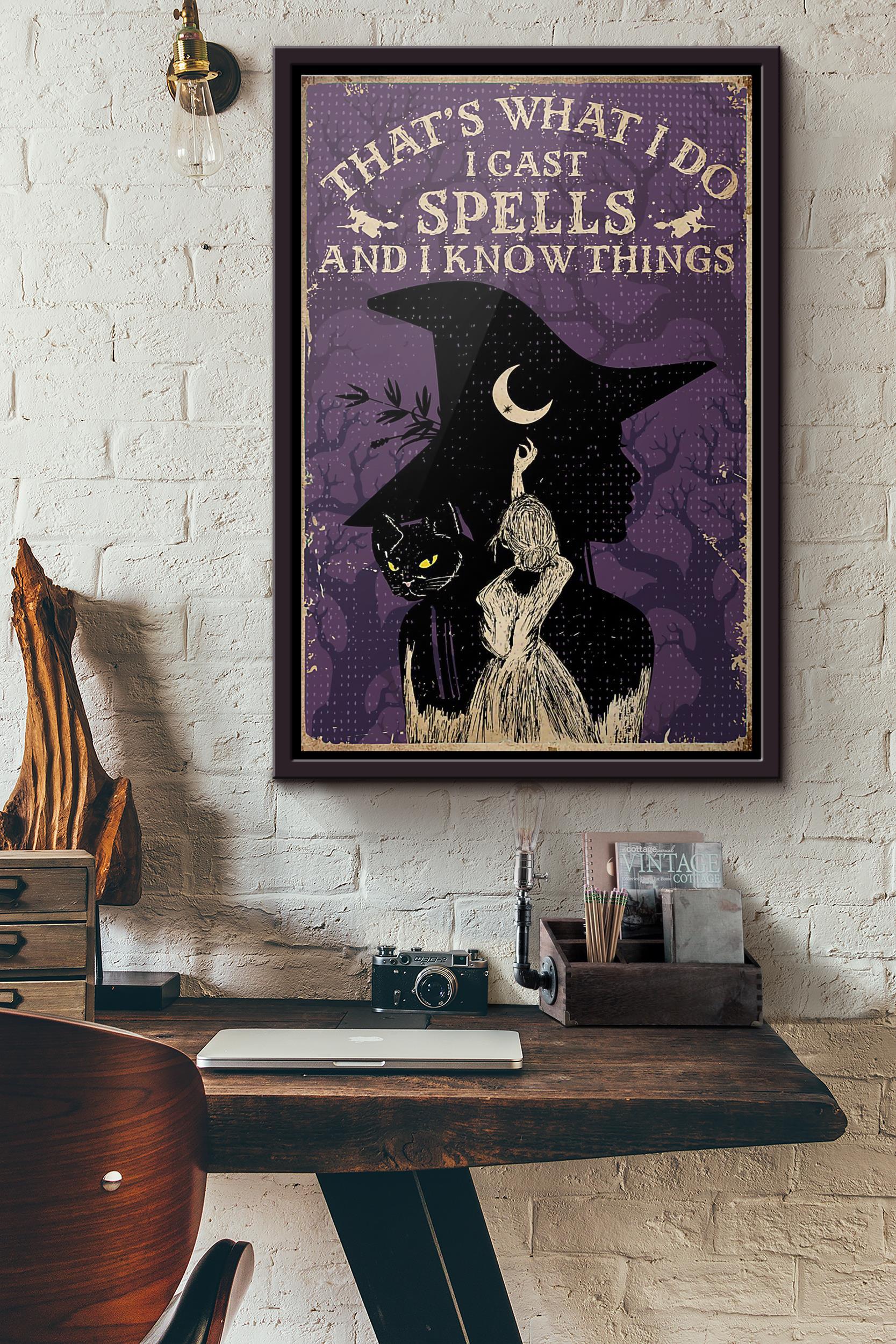 Black Cat Witch Thats What I Do I Cast Spells And I Know Things Poster Framed Matte Canvas
