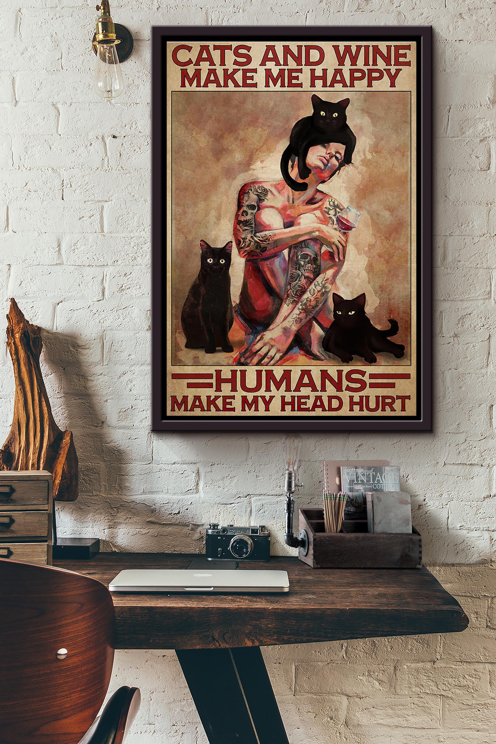 Black Cats And Wine Make Me Happy Humans Make My Head Hurt Poster Framed Matte Canvas