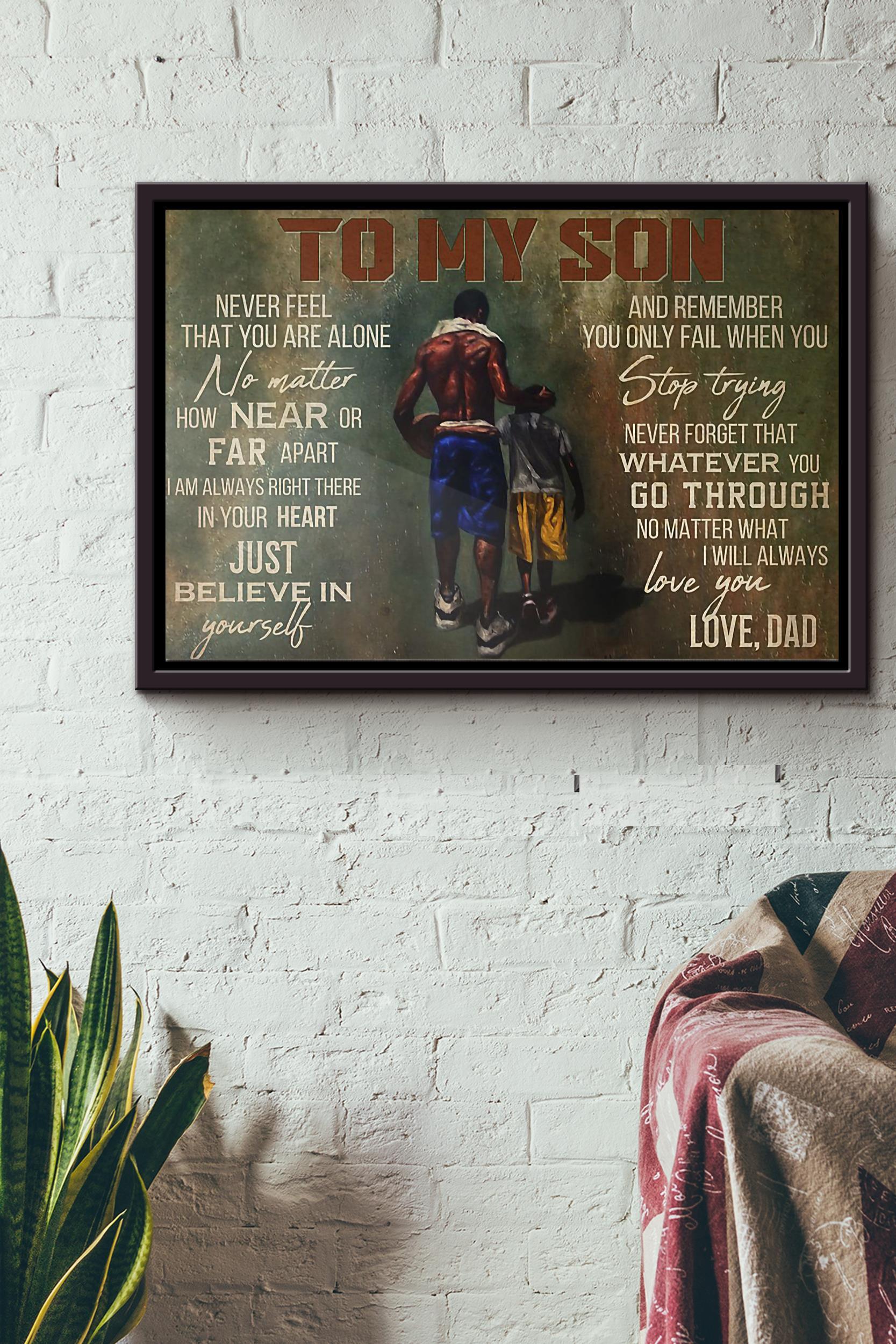 Black Dad To My Son Never Feel That You Are Alone No Matter How Near Or Far Apart I Am Always Right There In Your Heart Poster N Framed Matte Canvas
