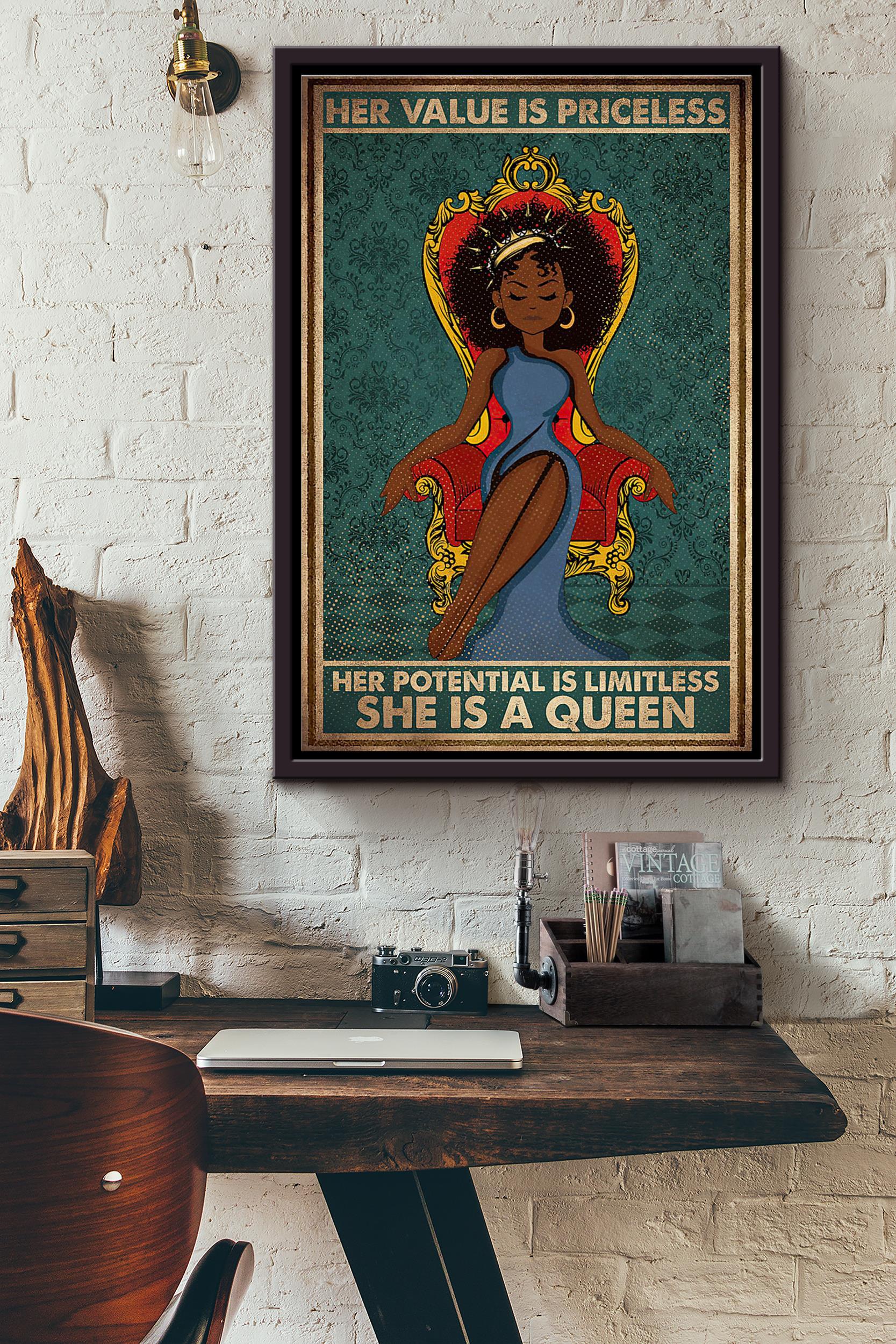 Black Her Value Is Priceless Her Potential Is Limitless She Is A Queen Poster Framed Matte Canvas