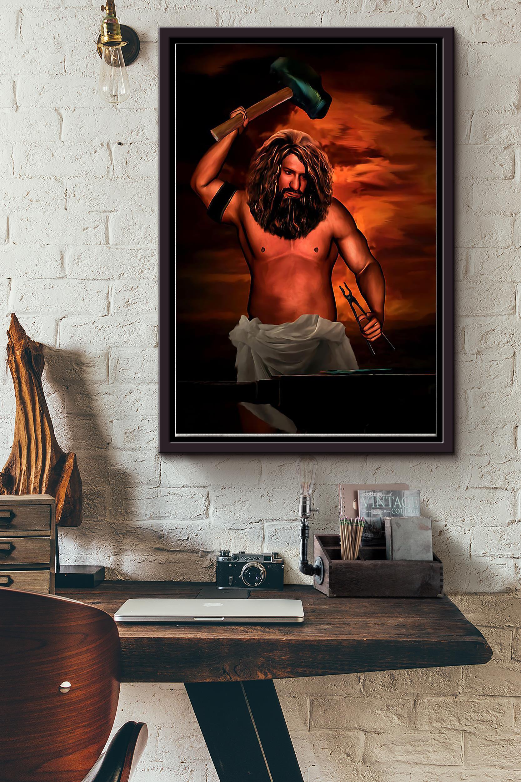 Blacksmith Man Poster Framed Matte Canvas