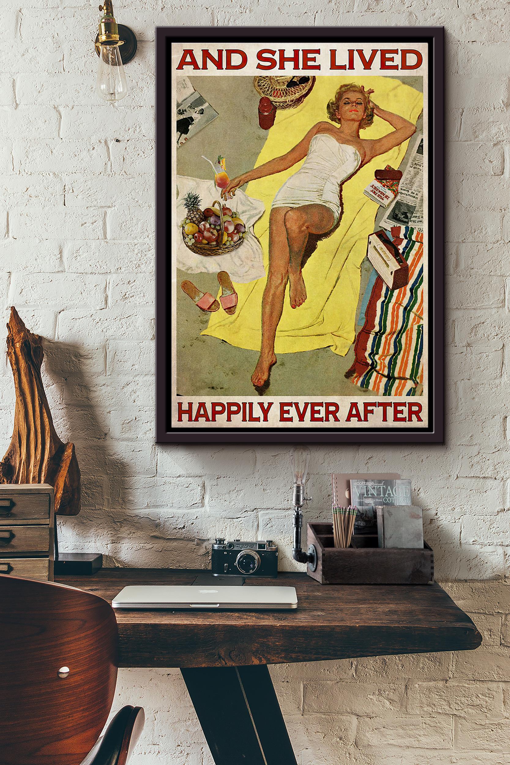 Blonde Girl Lying Beach She Lived Happily Ever After Poster Framed Matte Canvas