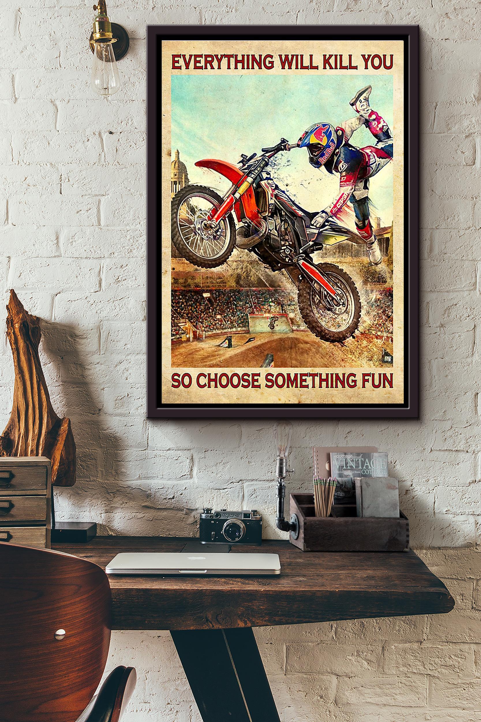 Bmx Biker Everything Will Kill You So Choose Something Fun Poster Framed Matte Canvas