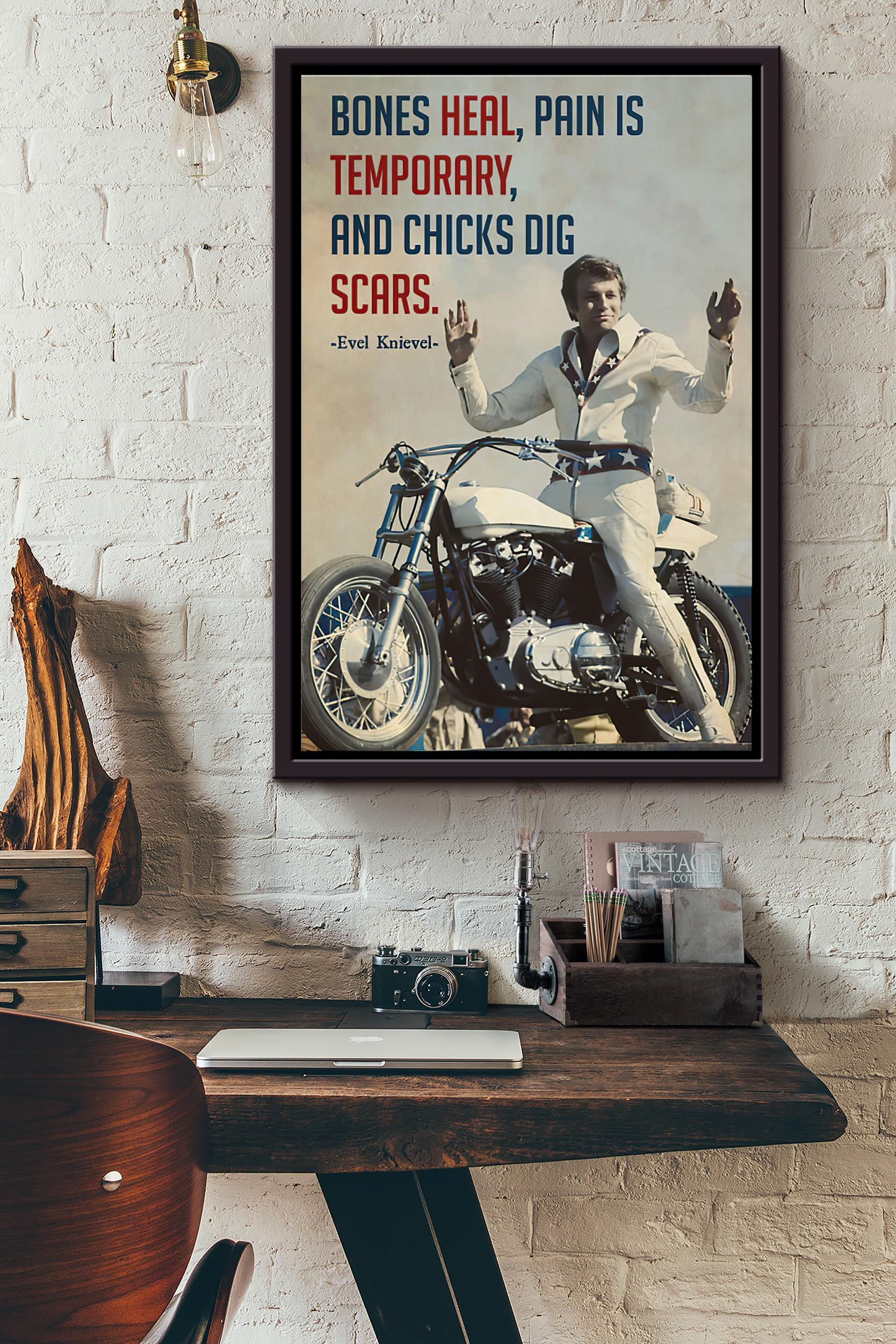 Bones Heal Pain Is Temporary And Chicks Dig Scars Evel Knievel Poster Framed Matte Canvas