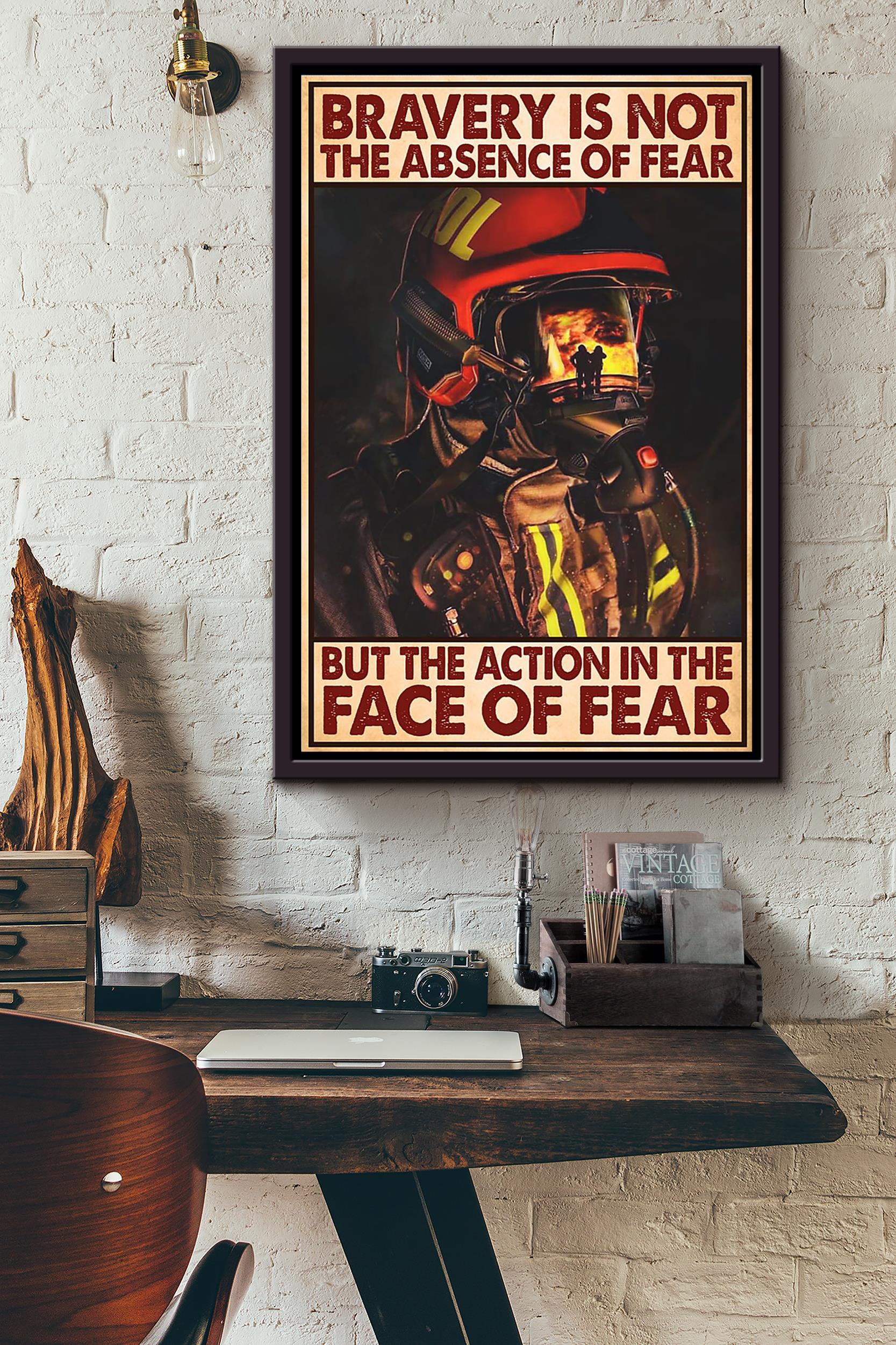 Bravery Is Not The Absence Of Fear But The Action In The Face Of Fear Fire Fighter Poster Framed Matte Canvas