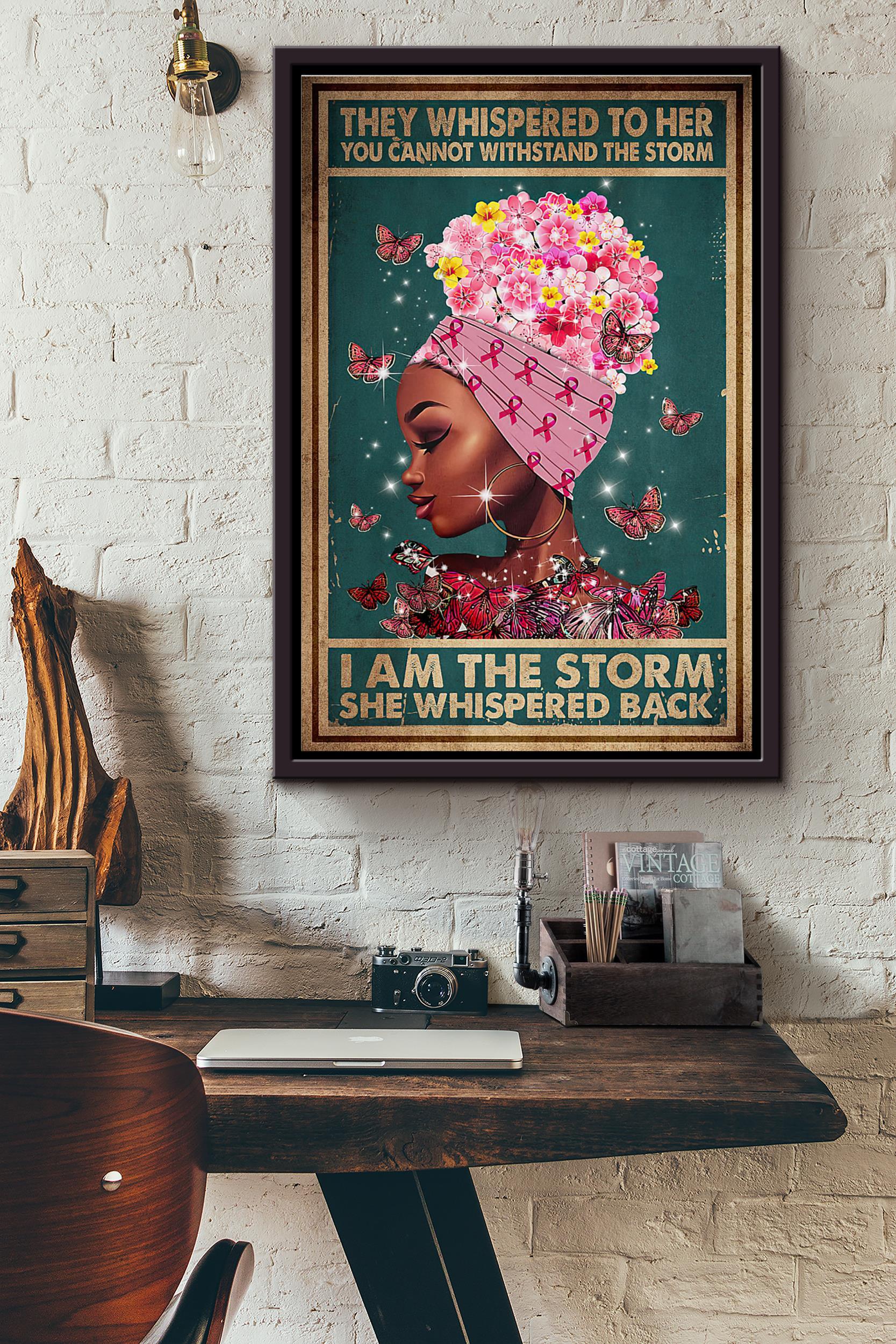 Breast Cancer Afro She Whispered Back I Am The Storm Poster Framed Matte Canvas
