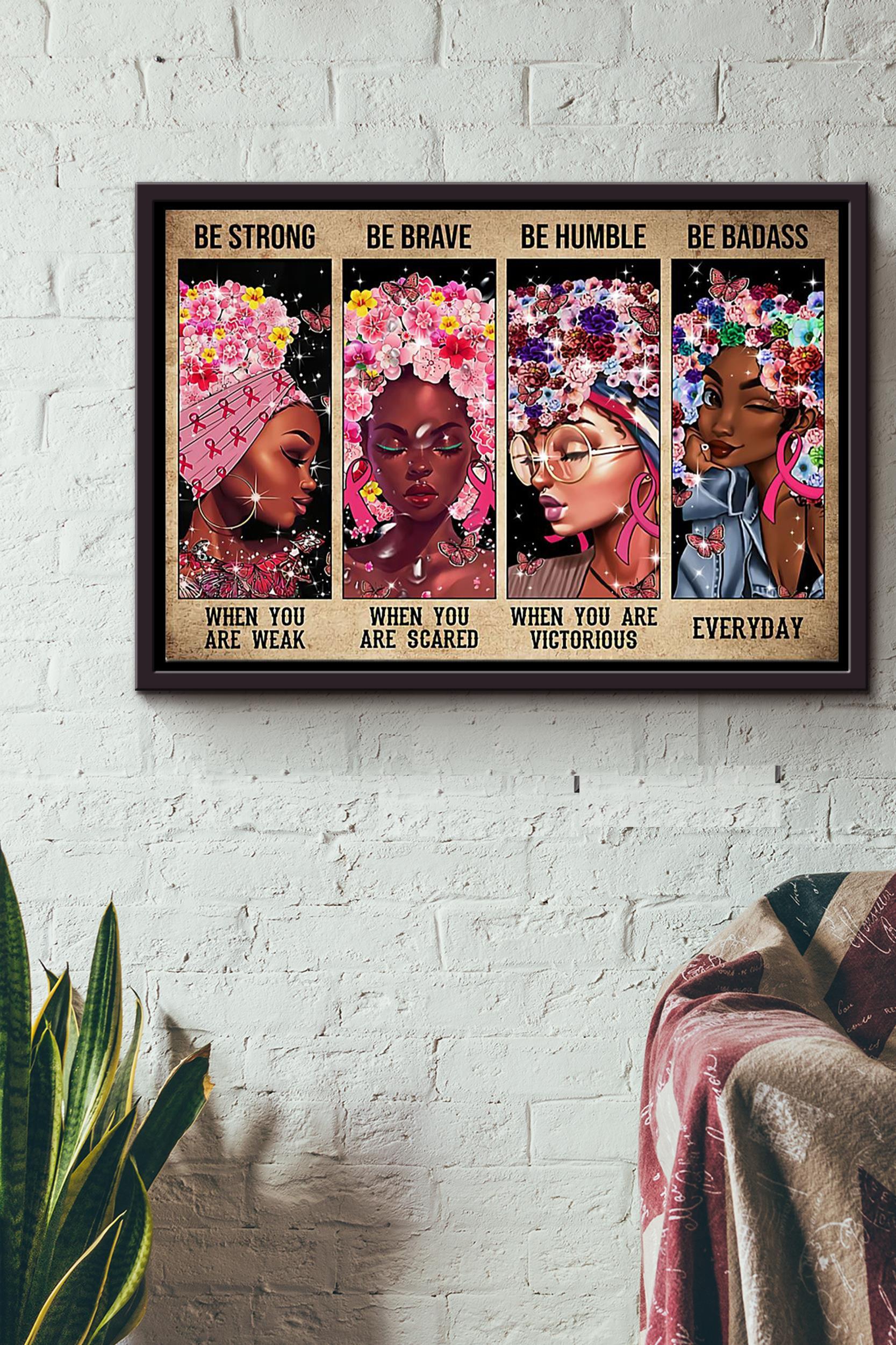 Breast Cancer Woman Be Strong Be Brave Be Humble And Be Badass Poster N Framed Matte Canvas
