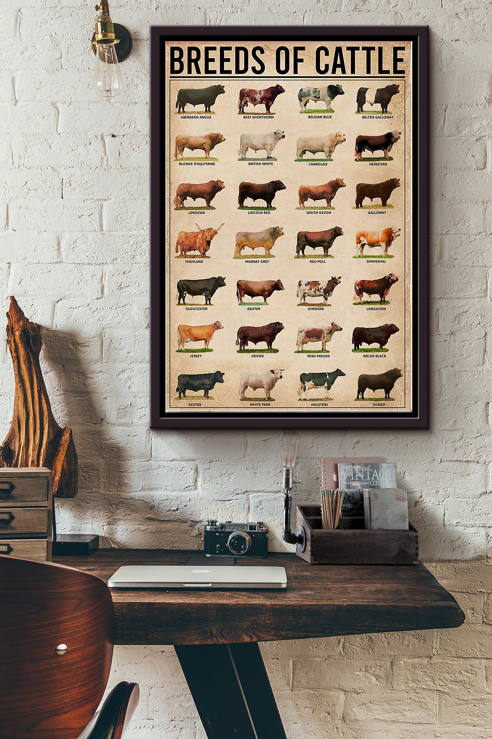 Breeds Of Cattle Cow Poster Framed Matte Canvas