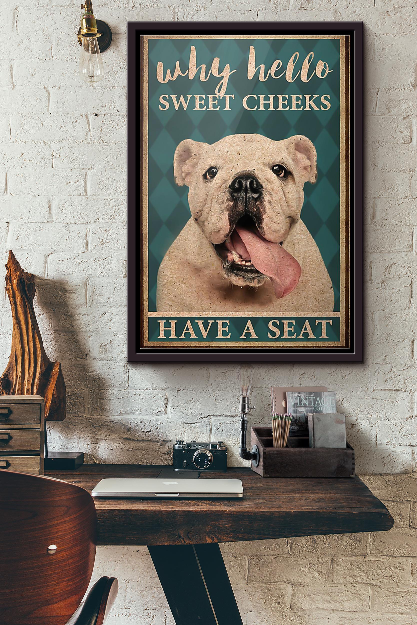 Bulldog Why Hello Sweet Cheeks Have A Seat Poster Framed Matte Canvas