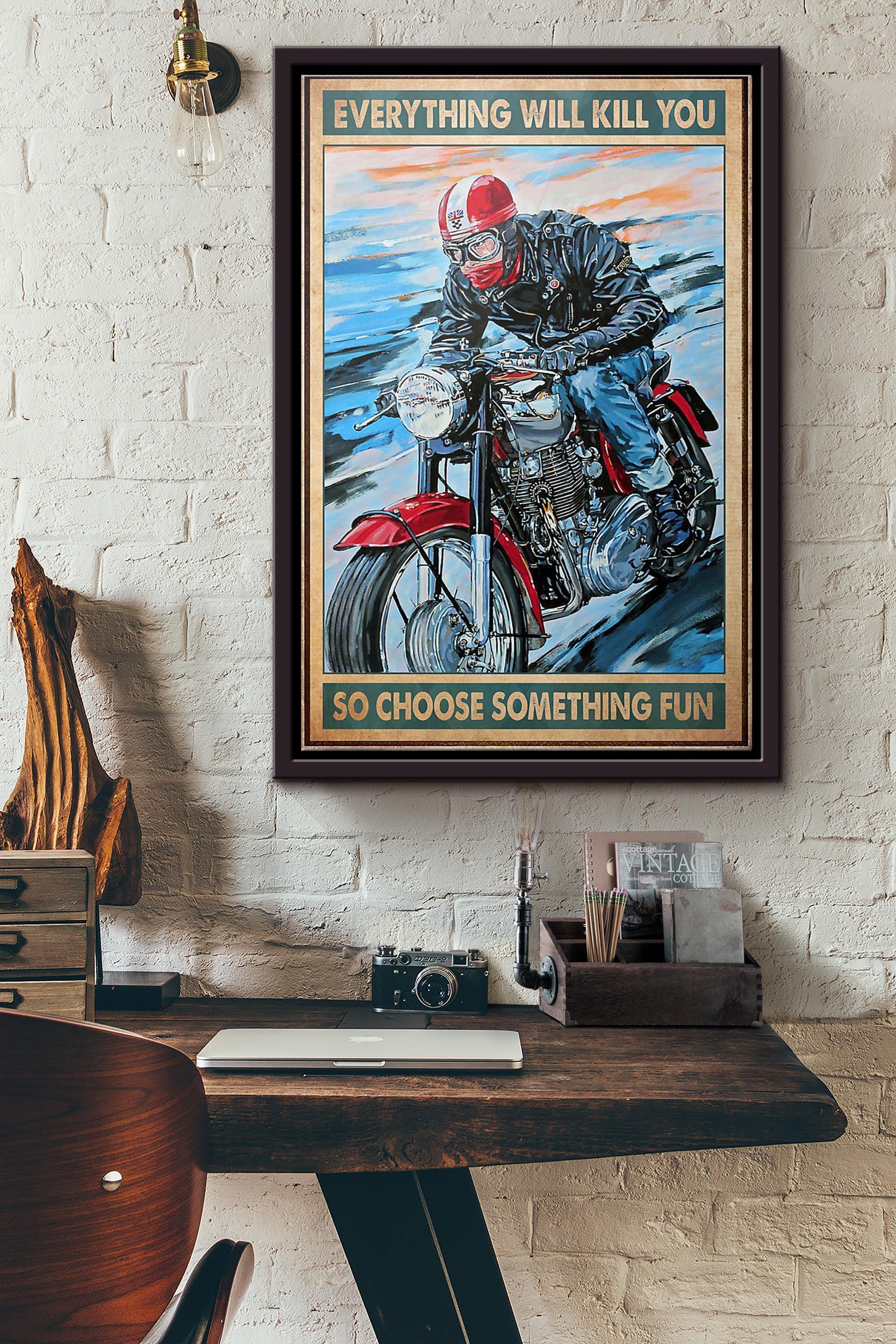 Caferacer Everything Will Kill You So Choose Something Fun Poster Framed Matte Canvas