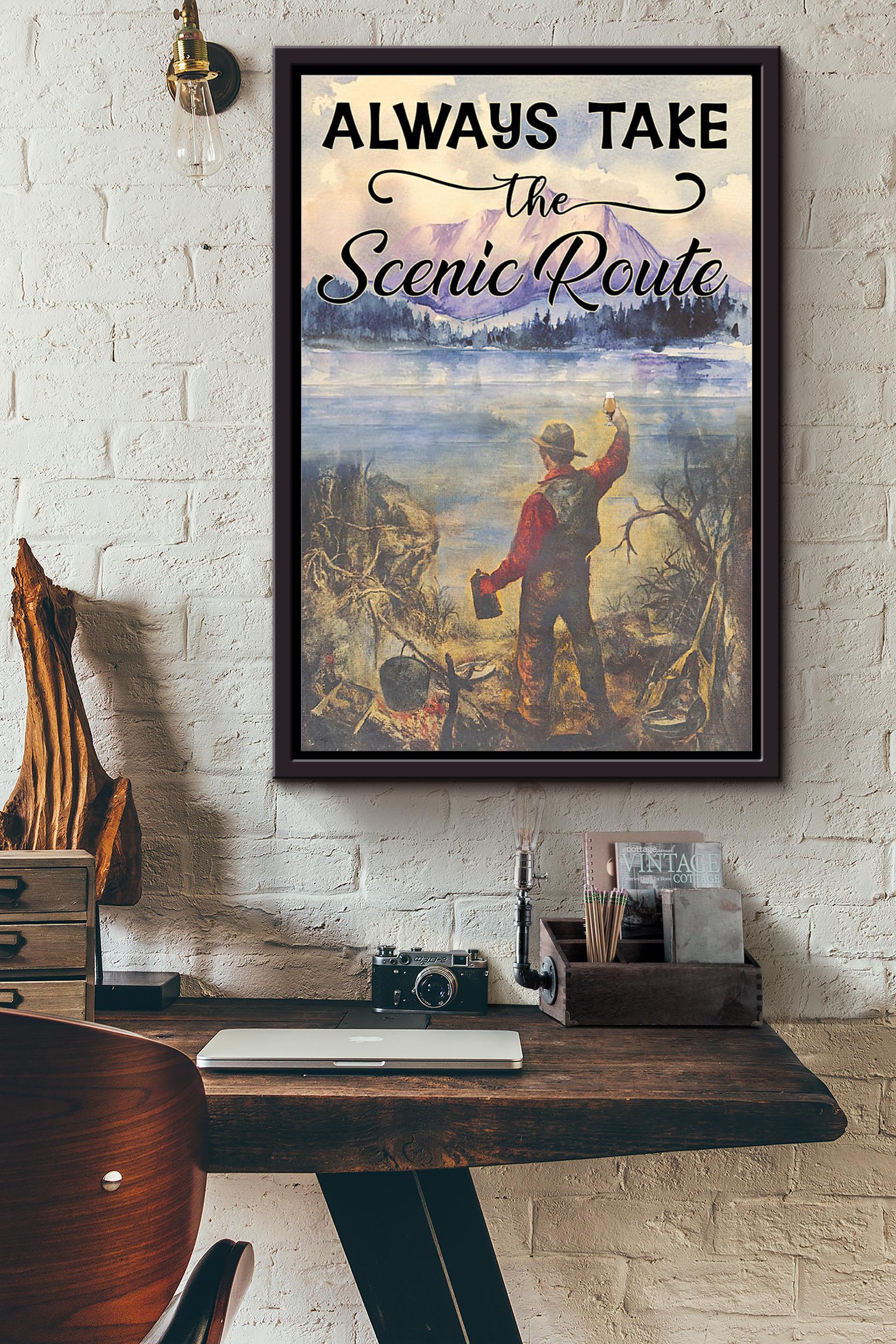 Camp Beer Mountain View Always Take The Scenic Route Poster Framed Matte Canvas