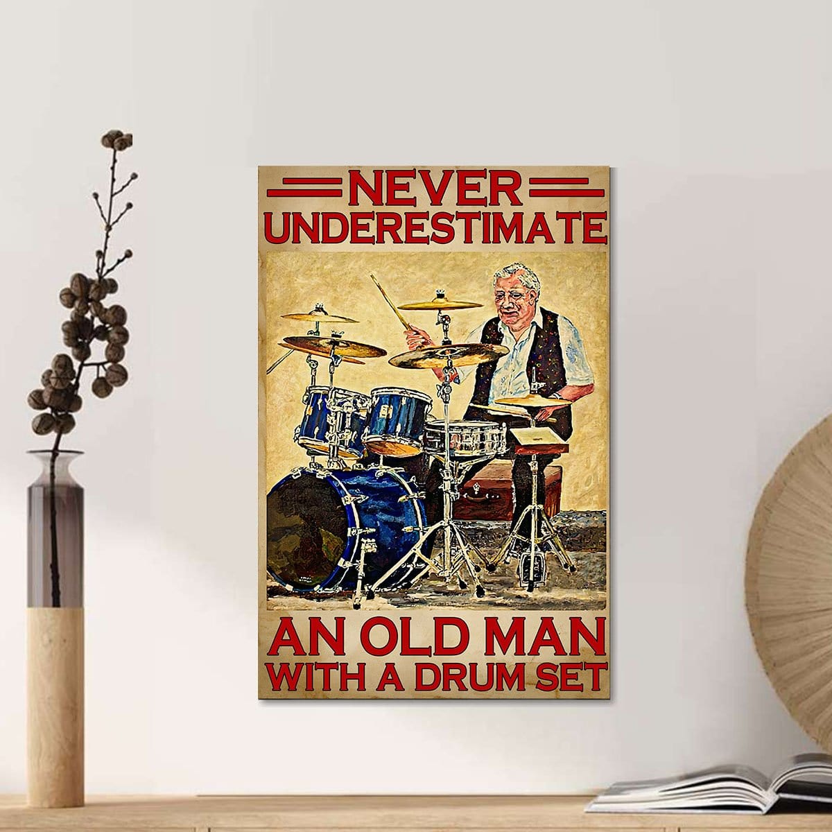 Canvas Prints Never Underestimate An Old Man With A Drum Set Dorm Room Canvas