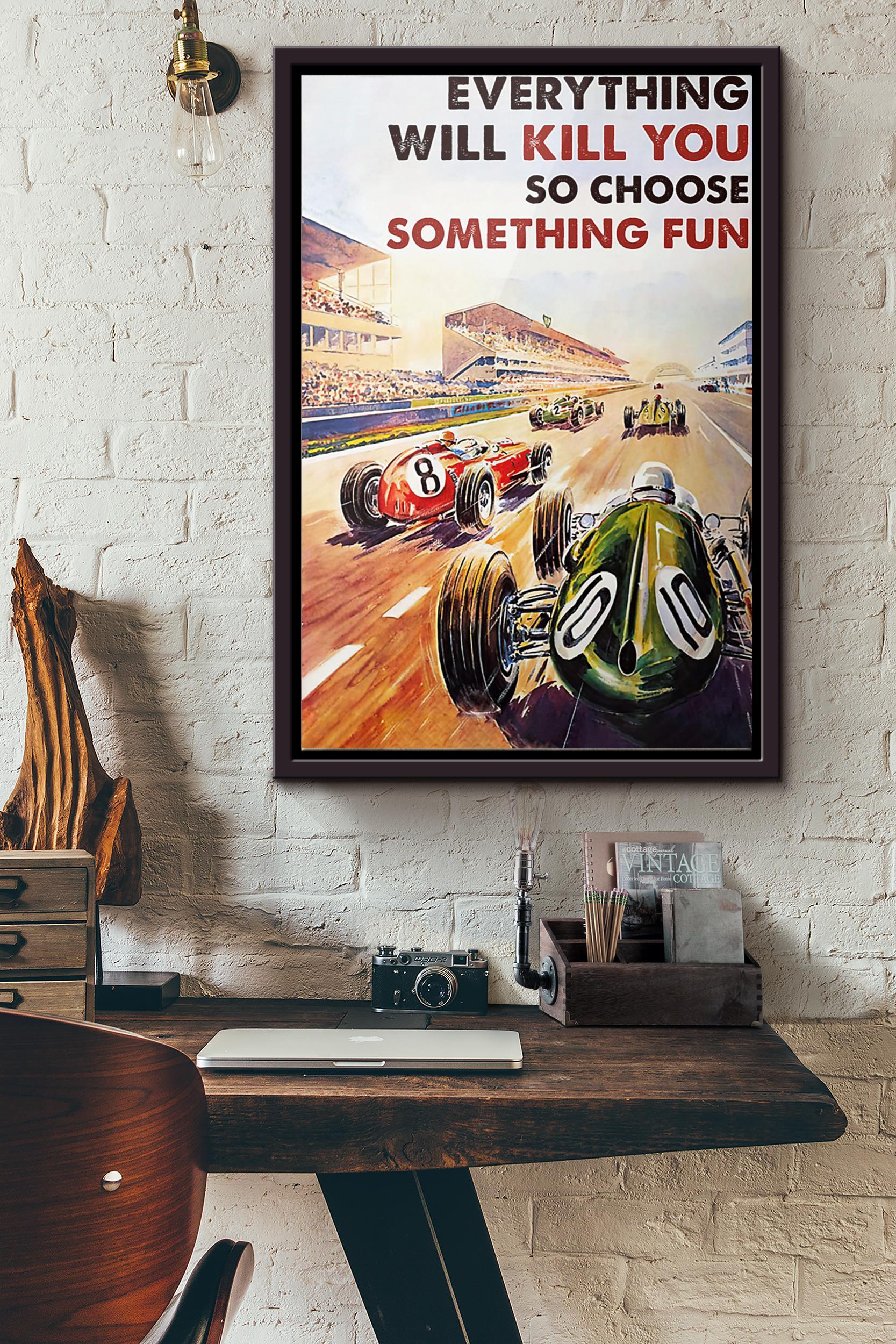 Car Racing Everything Will Kill You So Choose Something Fun Poster Framed Matte Canvas