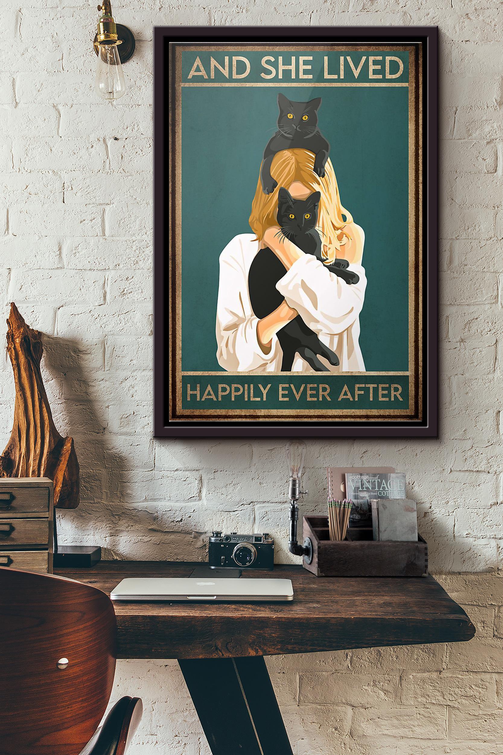Cat And She Lived Happily Ever After Poster Framed Matte Canvas