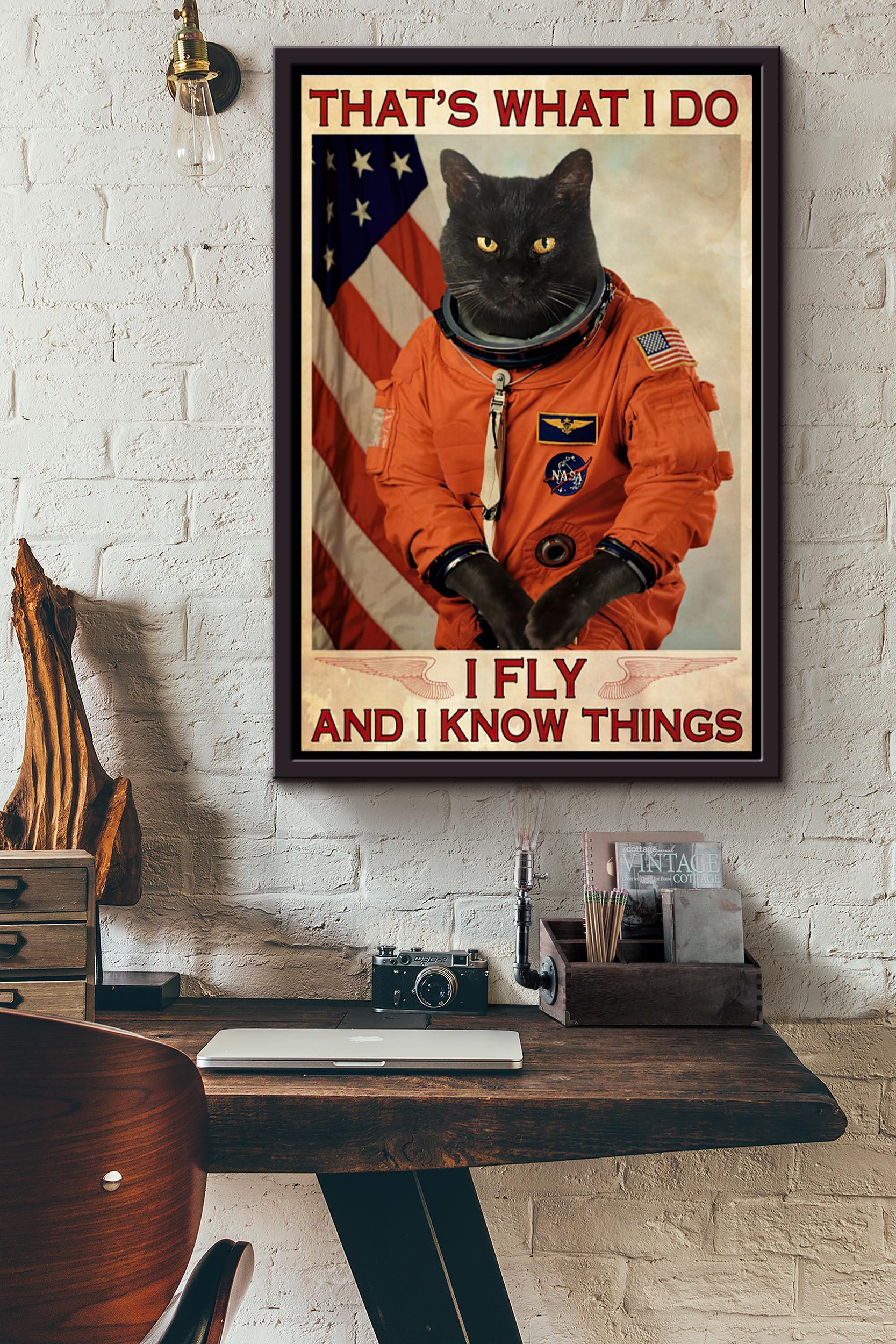 Cat Astronaut Thats What I Do I Fly And I Know Things Poster Framed Matte Canvas