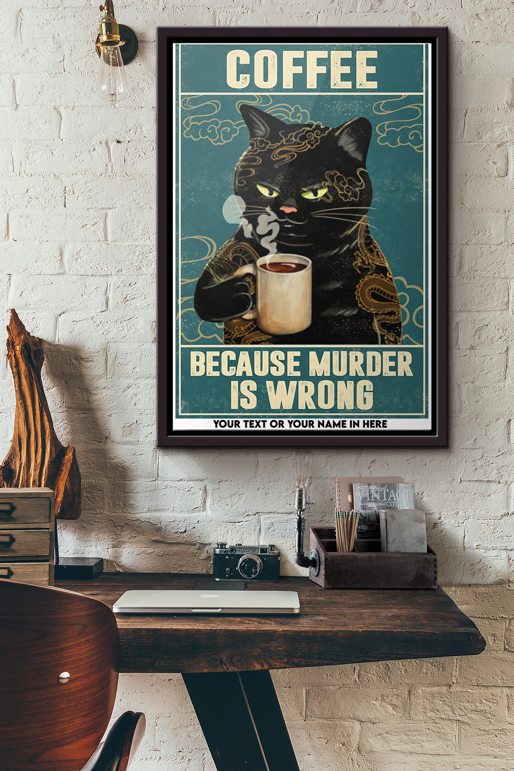 Cat Coffee Because Murder Is Wrong Poster Framed Matte Canvas