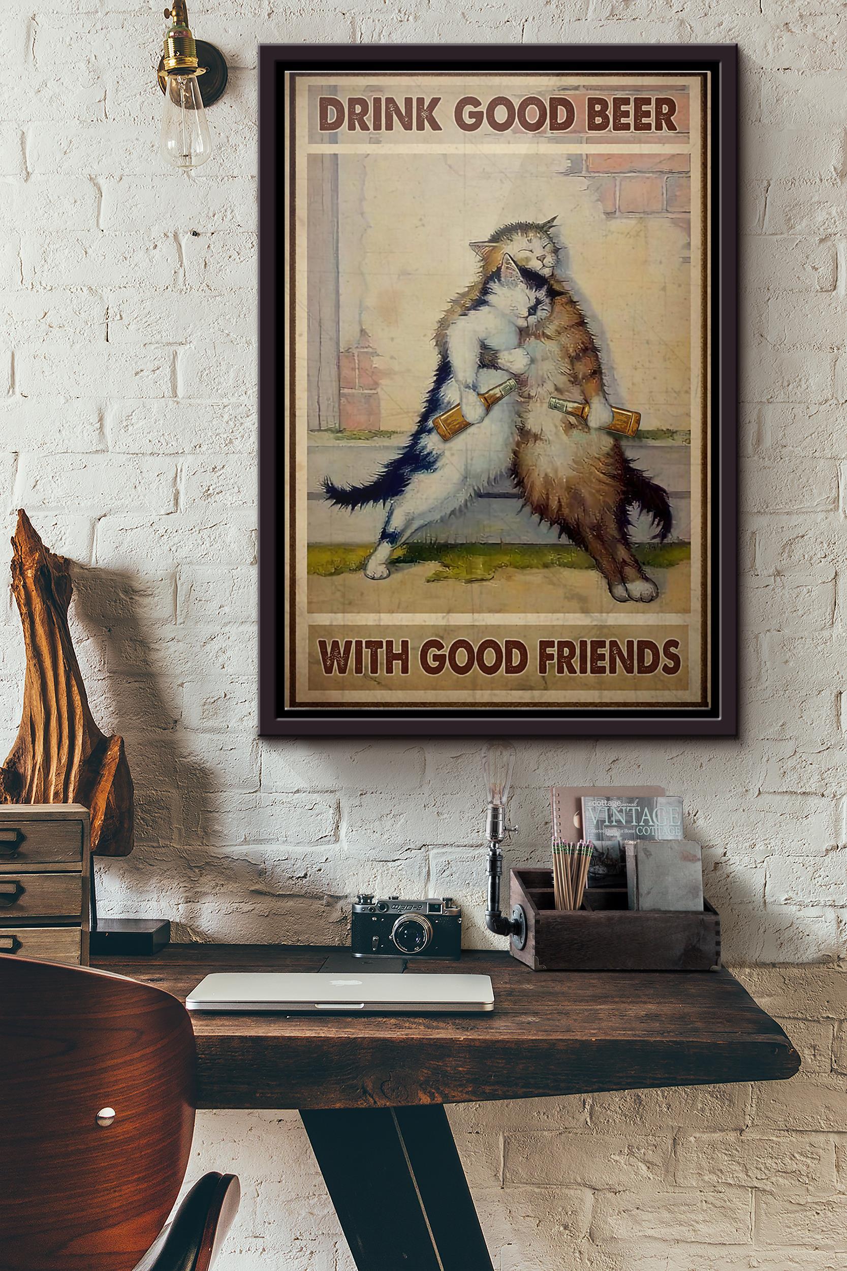 Cat Drink Good Beer With Good Friends Poster Framed Matte Canvas