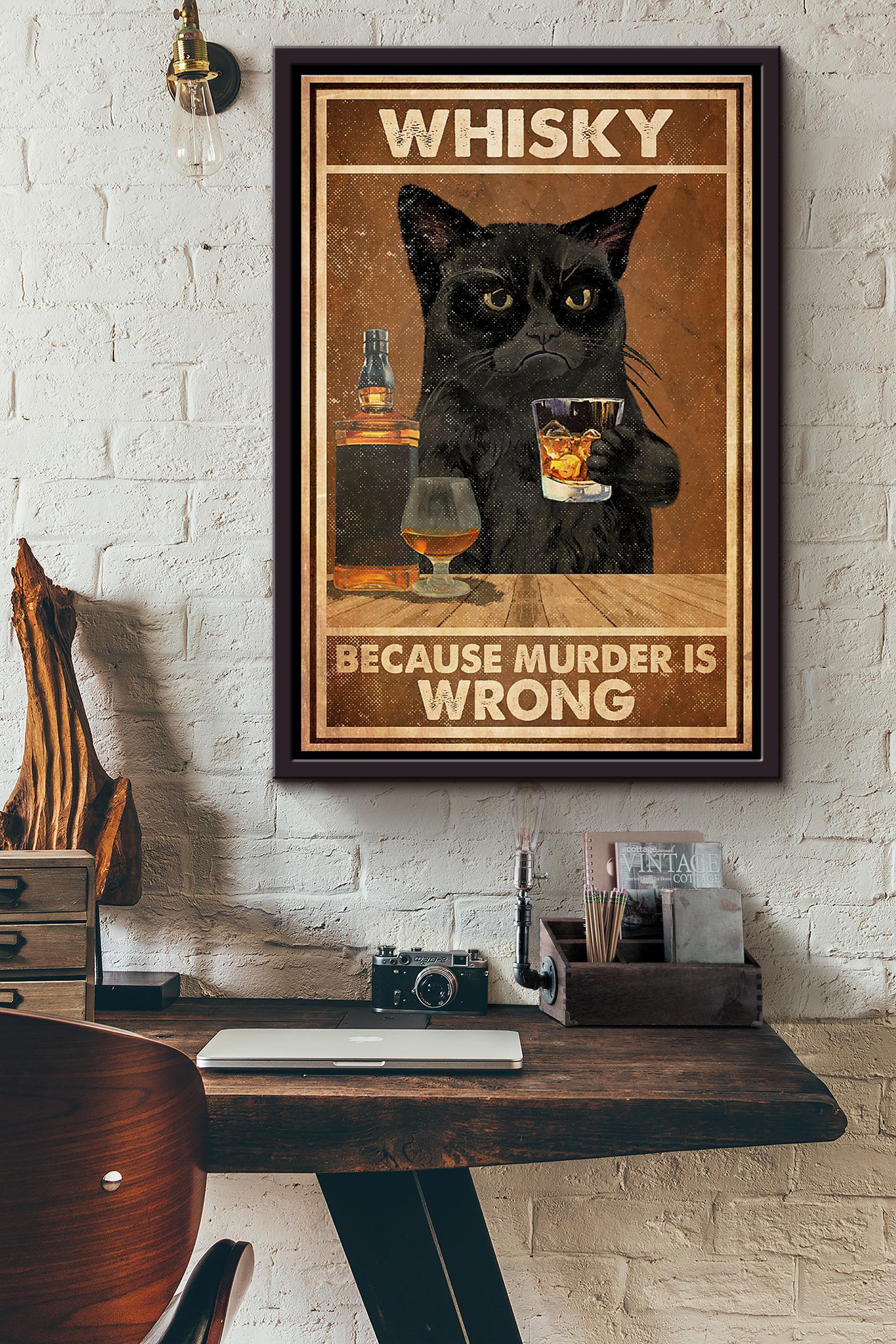 Cat Drinking Whiskey Because Murder Is Wrong Poster Framed Matte Canvas