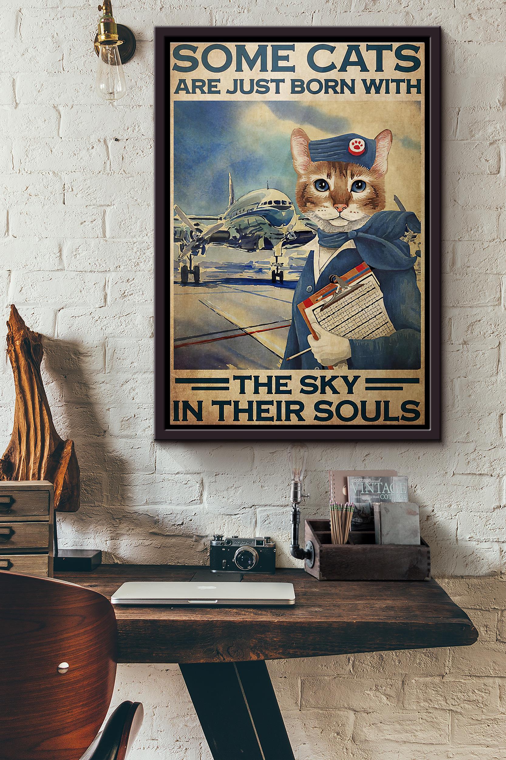 Cat Flight Attendant Some Cats Are Just Born With The Sky In Their Souls Poster Framed Matte Canvas