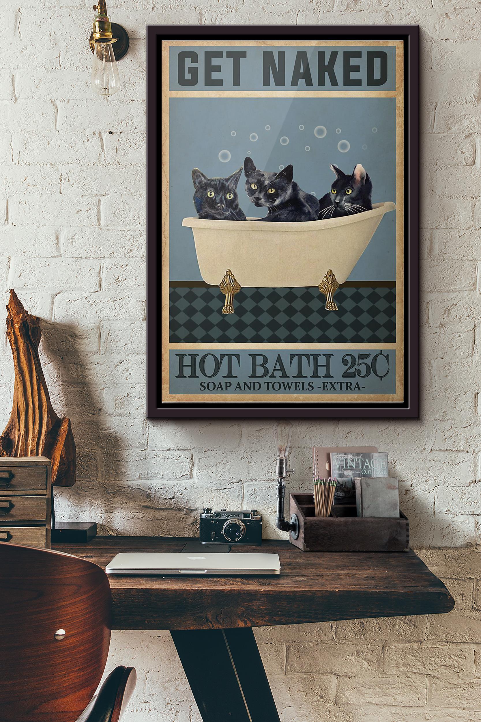 Cat Get Naked Hot Bath Soap And Towels Extra Poster Framed Matte Canvas