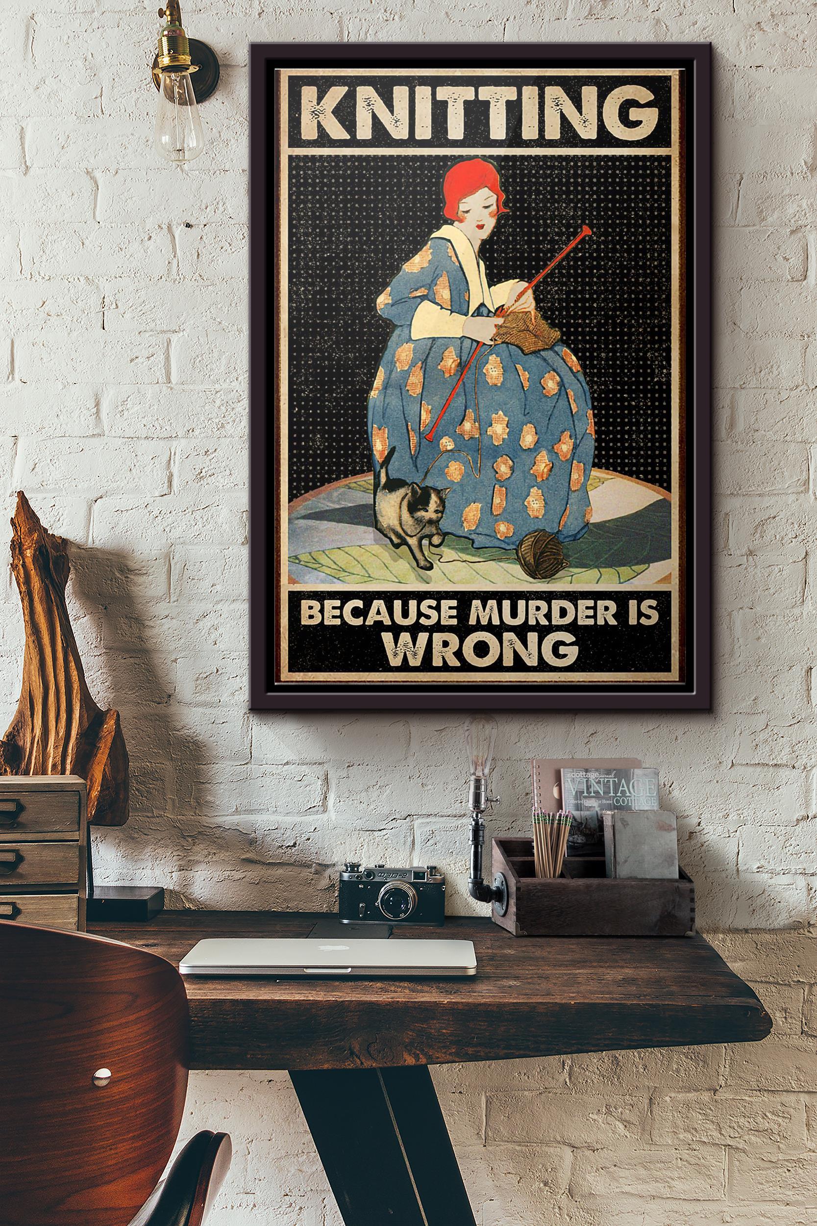 Cat Girl Knitting Because Murder Is Wrong Poster Framed Matte Canvas
