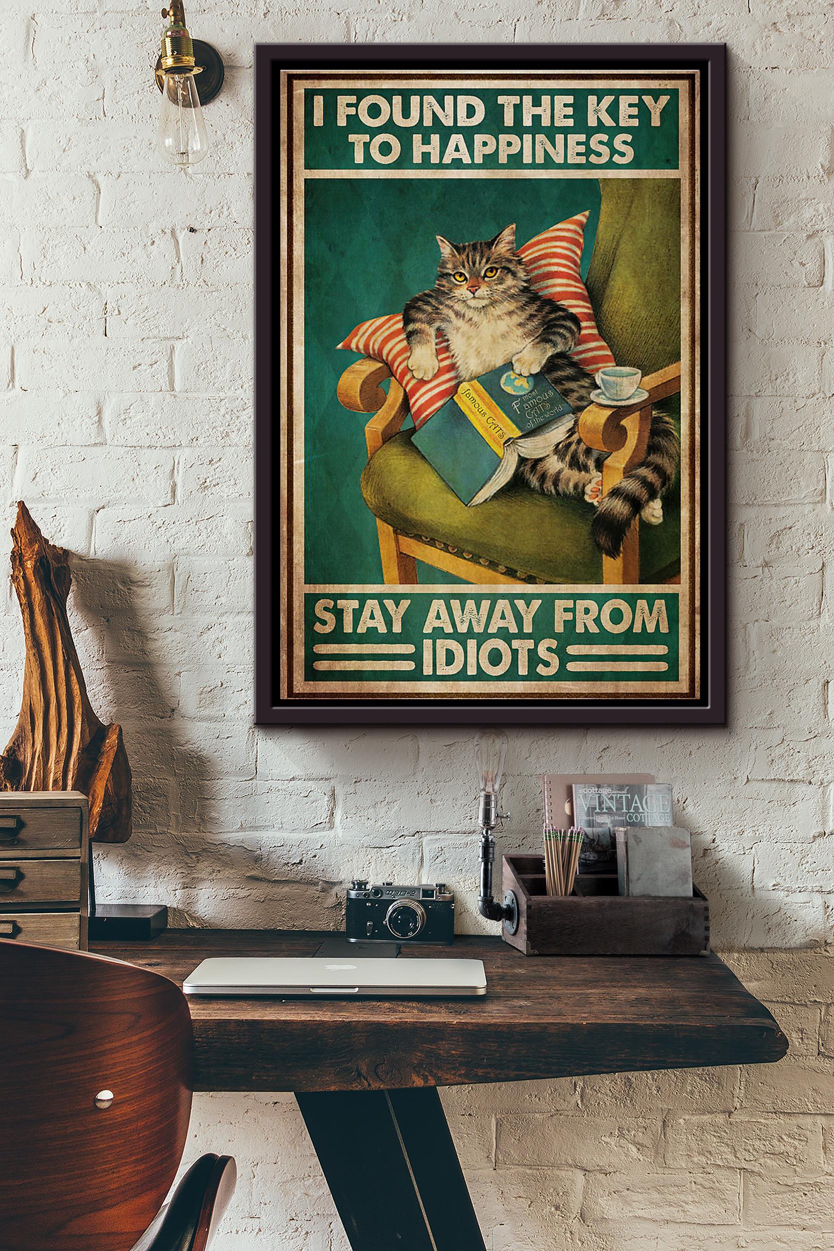 Cat I Found The Key To Happiness Stay Away From Idiots Poster Framed Matte Canvas