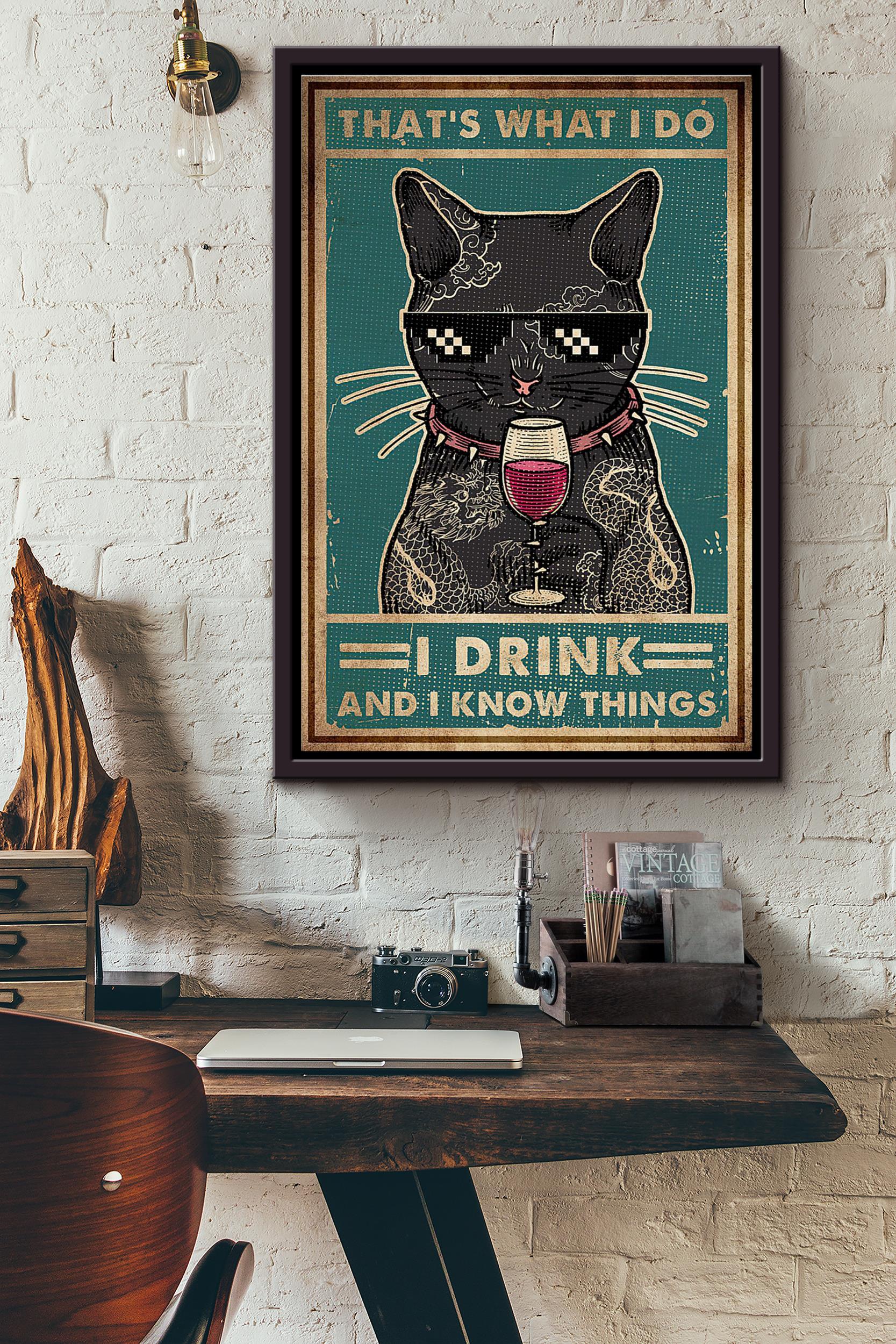Cat Lover Tattoo Thats What I Do I Drink Wine And I Know Things Poster Framed Matte Canvas