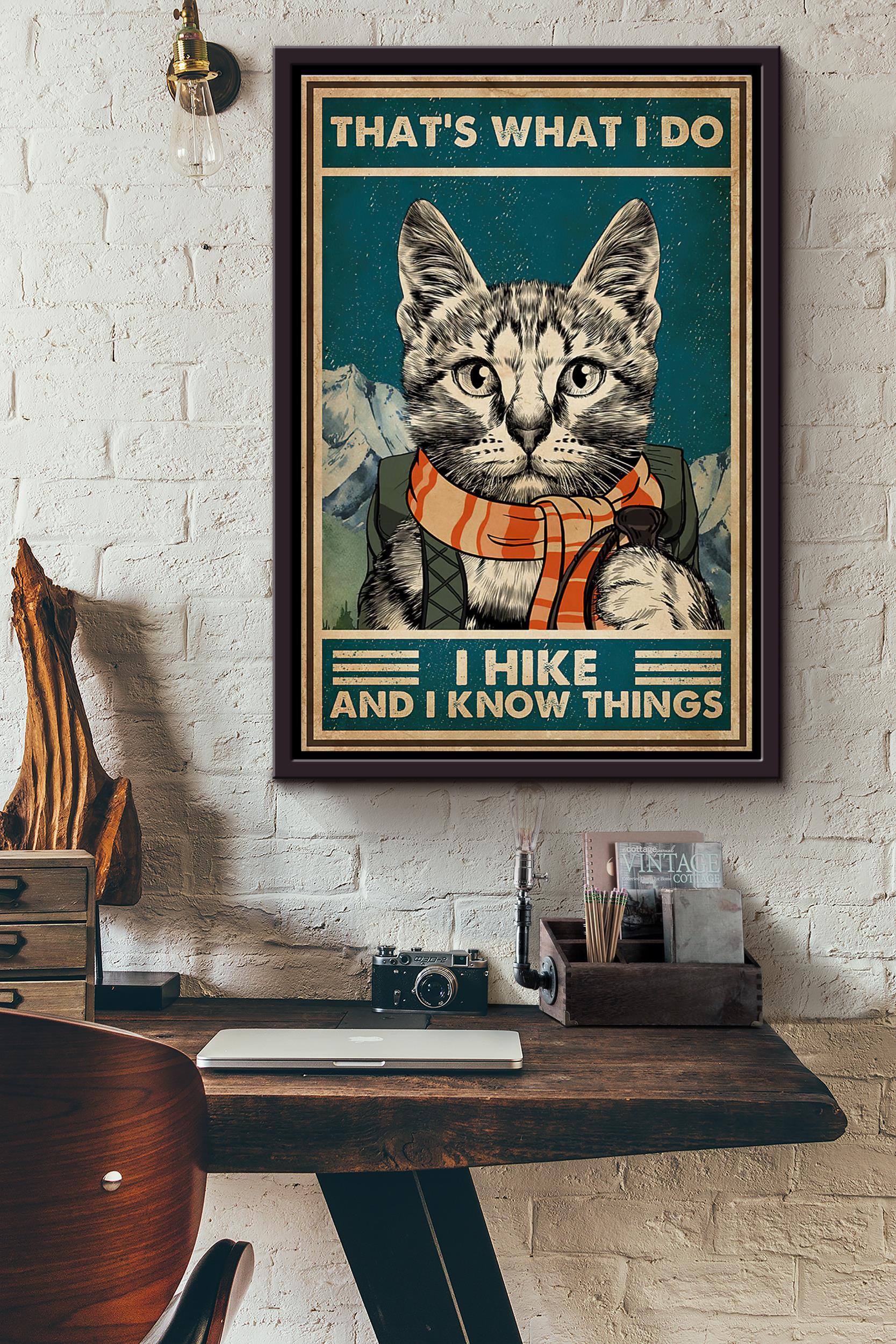 Cat Lover Thats What I Do I Hike And I Know Things Poster Framed Matte Canvas