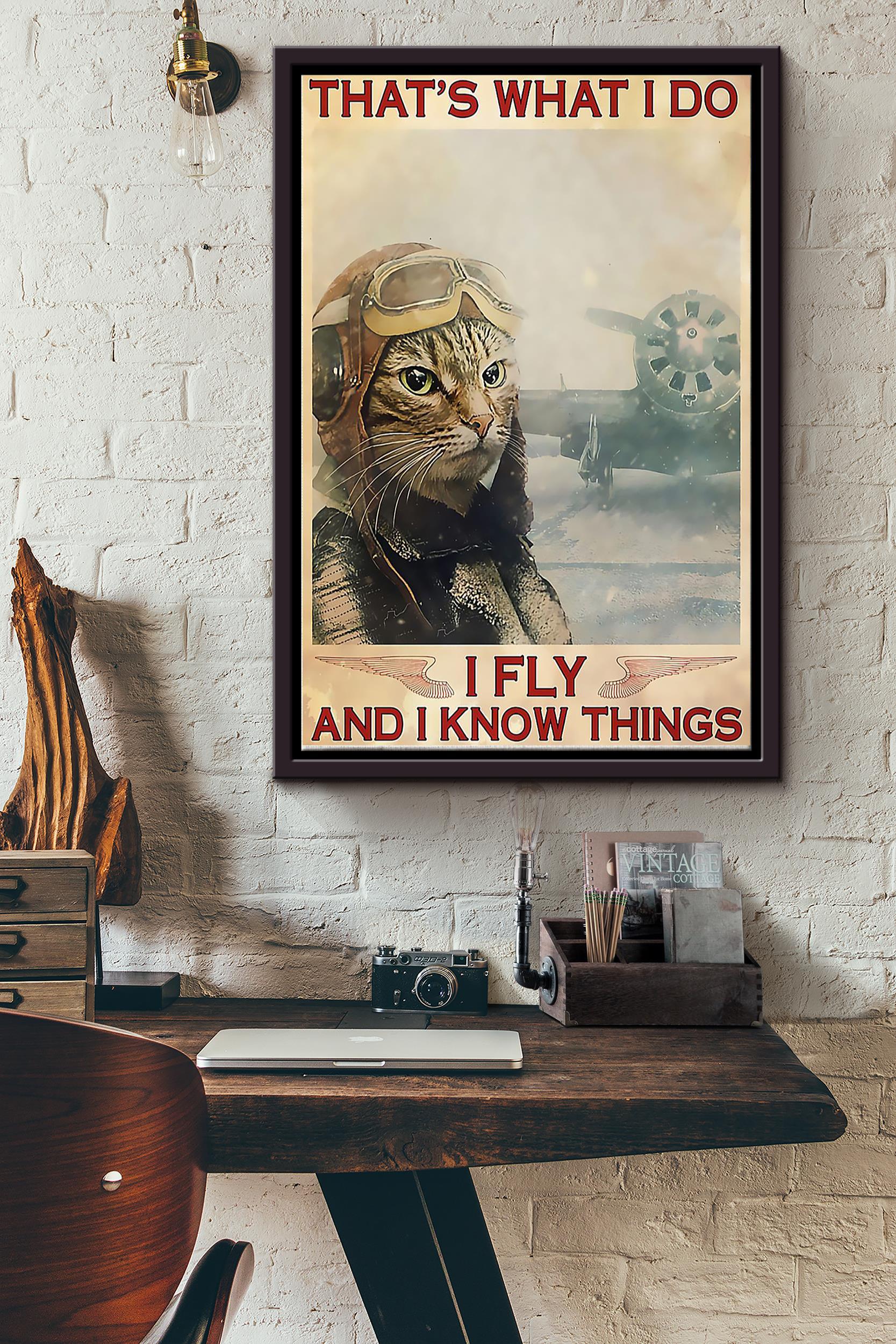 Cat Pilot Thats What I Do Fly And Know Things Poster – – Aviation Knowledge Wall Art – Gift For Flight Engineer Flight Attendants Pilot Cat Lover Framed Matte Canvas