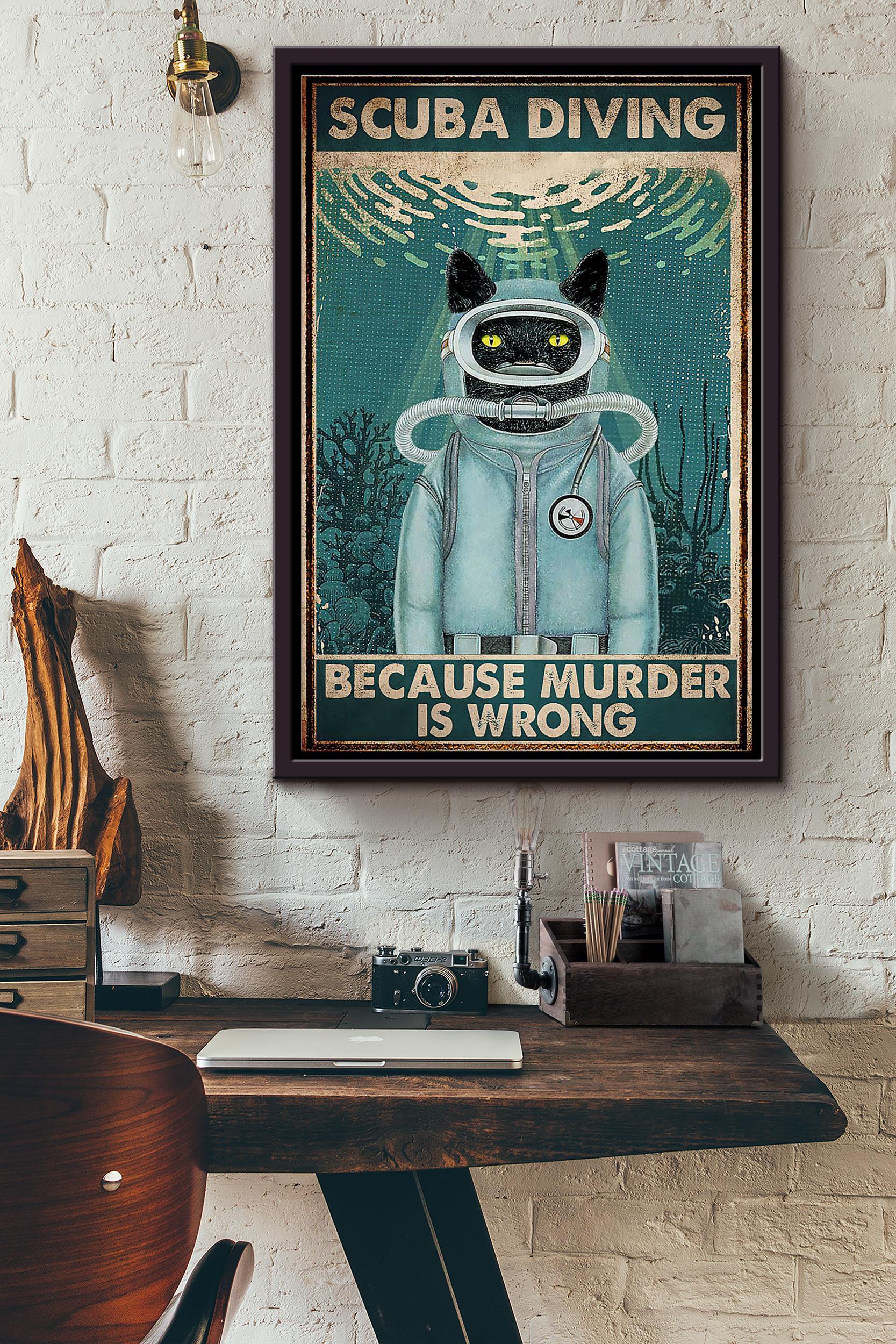 Cat Scuba Diving Because Murder Is Wrong Poster Framed Matte Canvas