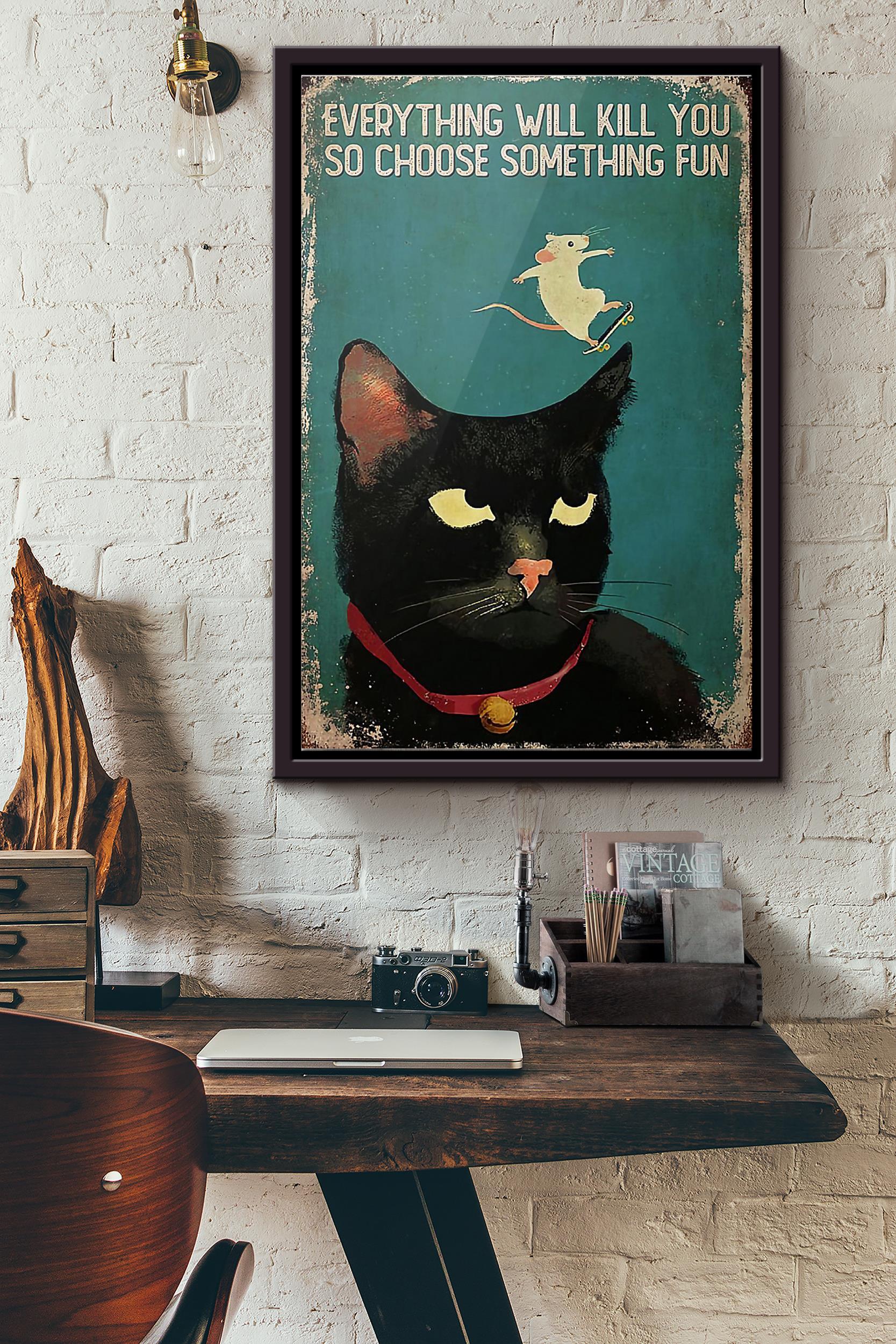 Cat Skateboard Mouse Everything Will Kill You So Choose Something Fun Poster Framed Matte Canvas
