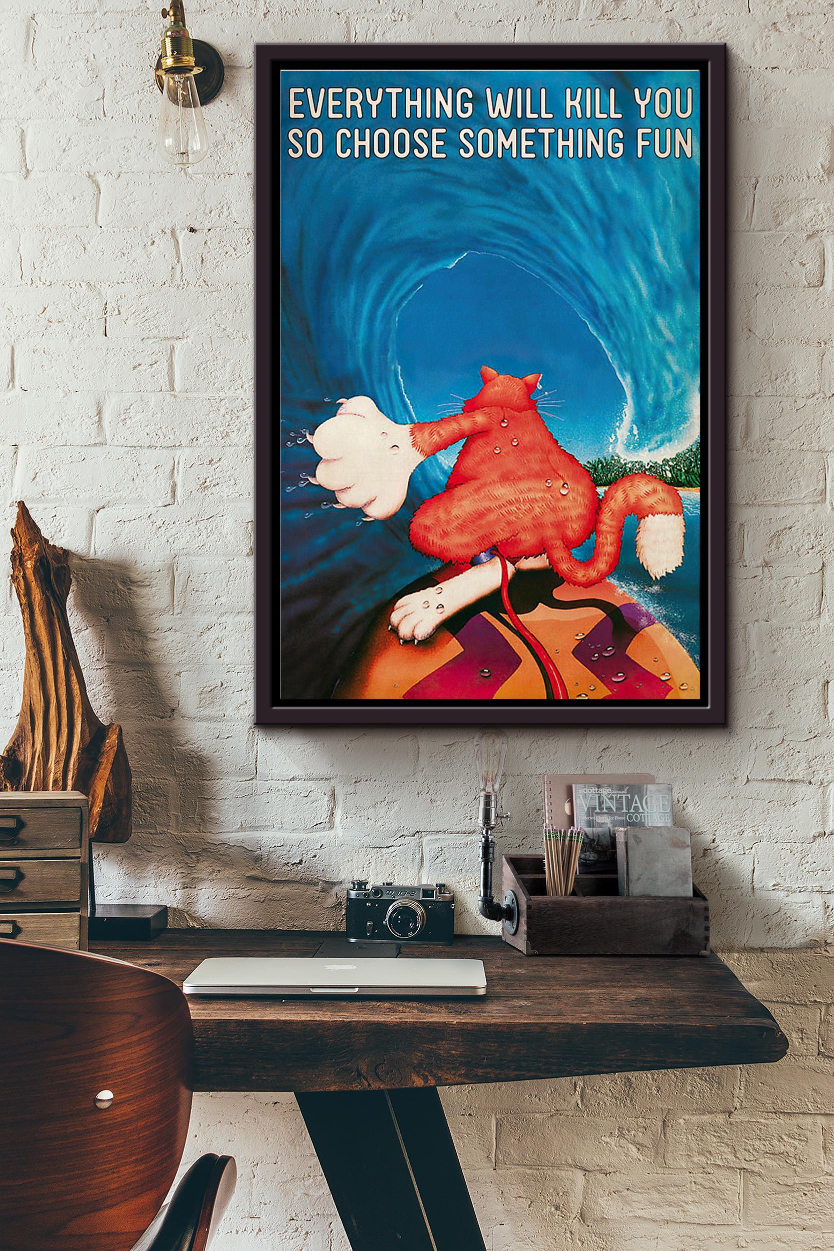 Cat Surfer Everything Will Kill You So Choose Something Fun Poster Framed Matte Canvas