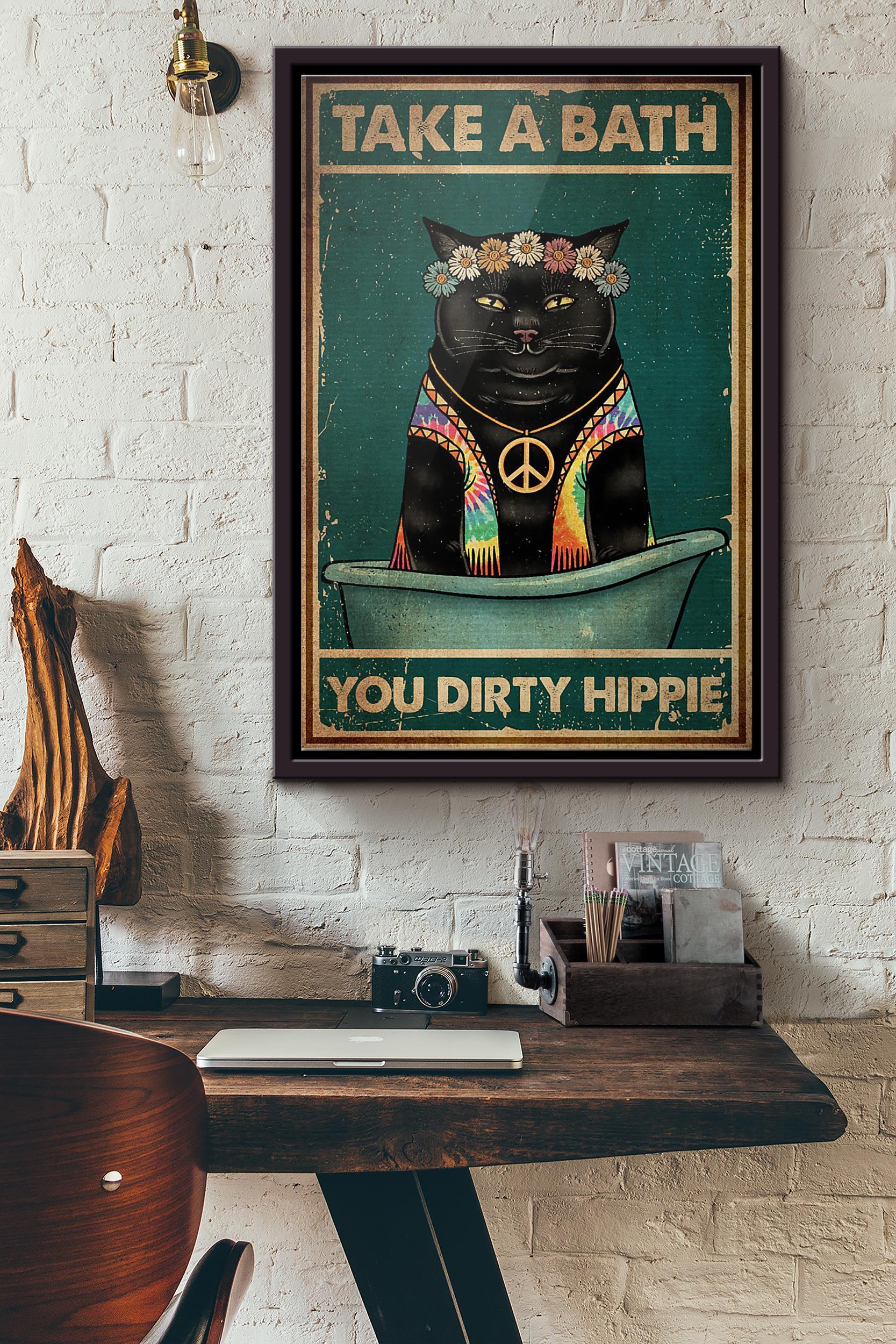 Cat Take A Bath You Dirty Hippie Poster Framed Matte Canvas