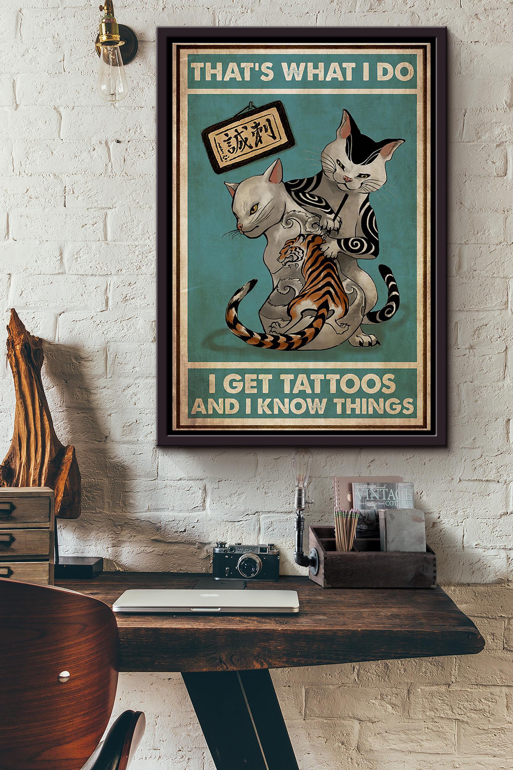 Cat Tattooist Thats What I Do I Get Tattoos And I Know Things Poster Framed Matte Canvas