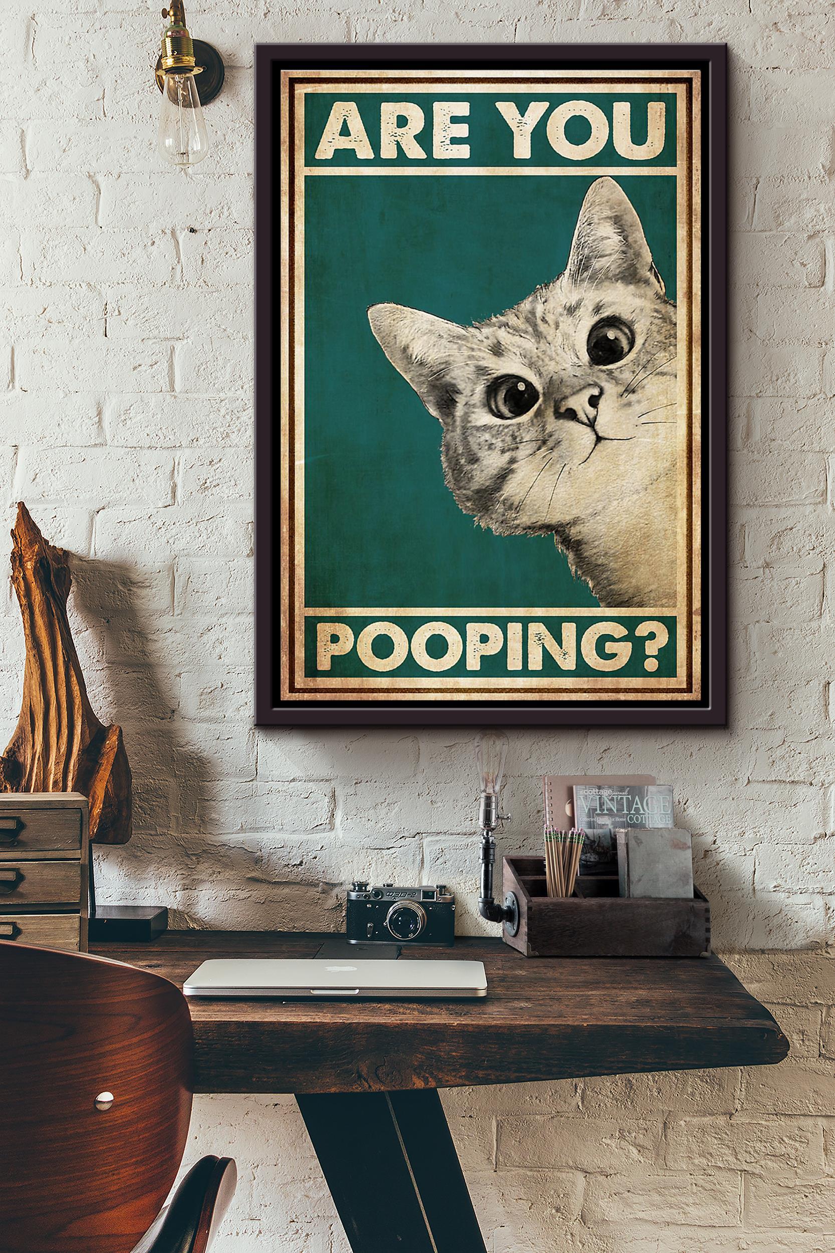 Cat Toilet Are You Pooping Poster Framed Matte Canvas